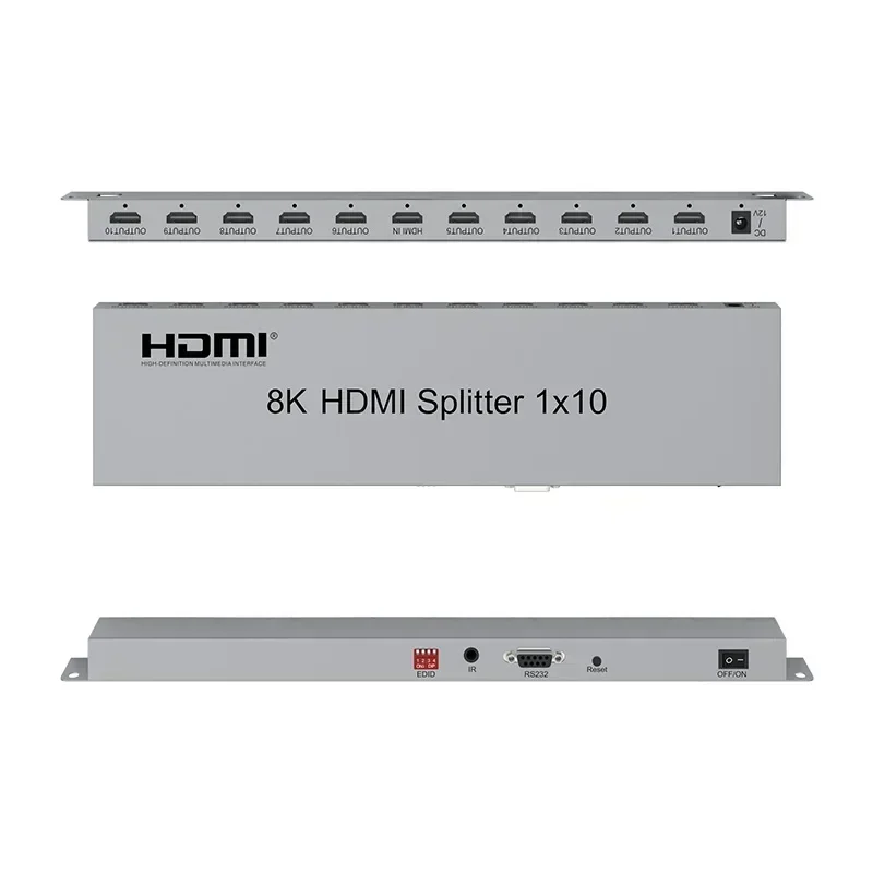 Comprar Divisor de Audio y vídeo multicanal, convertidor 3D EDID RS232 para DVD, PS4, cámara, PC a TV, 8K, 60Hz, 1x10 HDMI