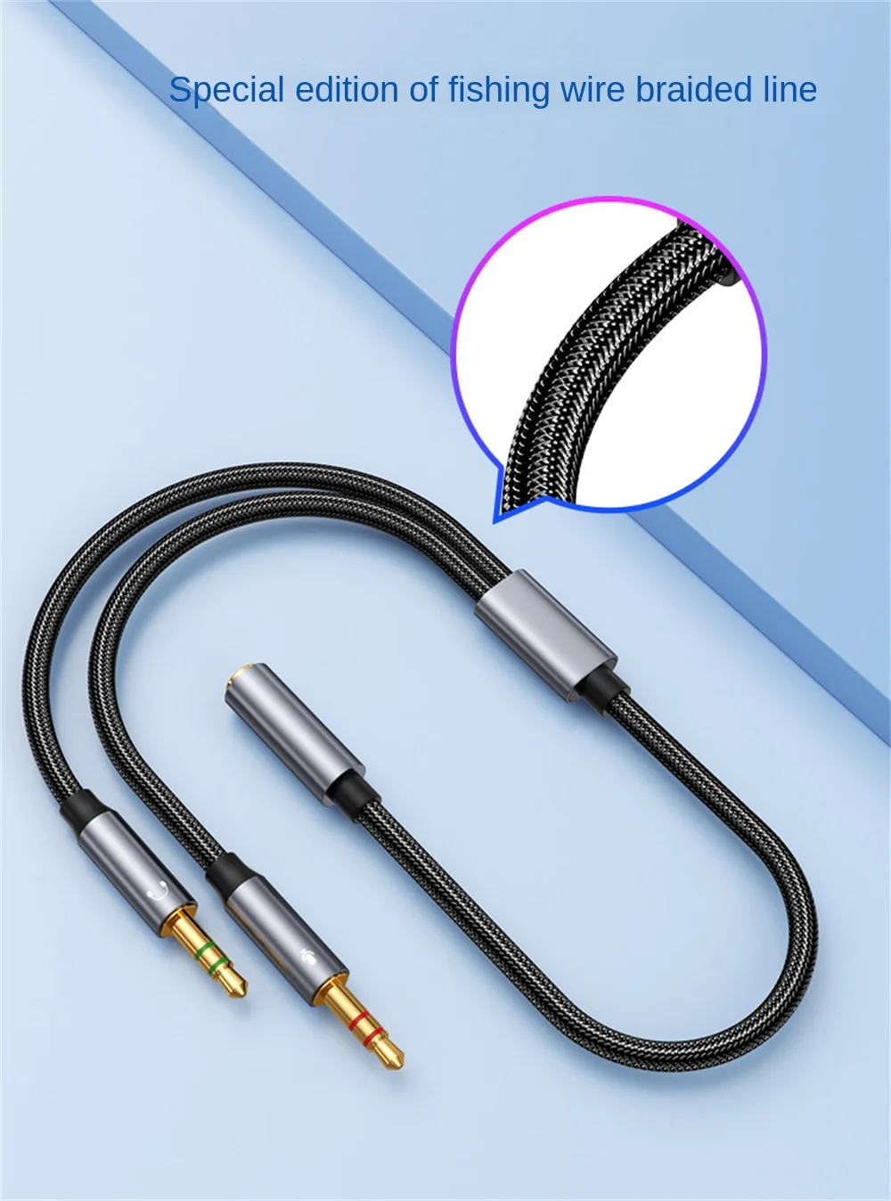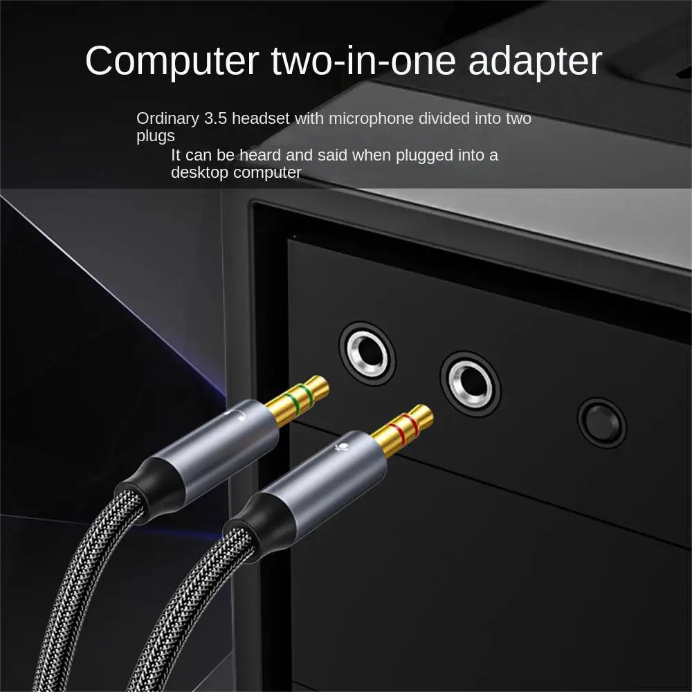 Divisor de auriculares para ordenador, 3,5mm hembra a 2 micrófonos macho duales de 3,5mm, Cable divisor de Audio AUX Y, adaptador de auriculares a PC 0,35M 1M