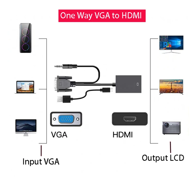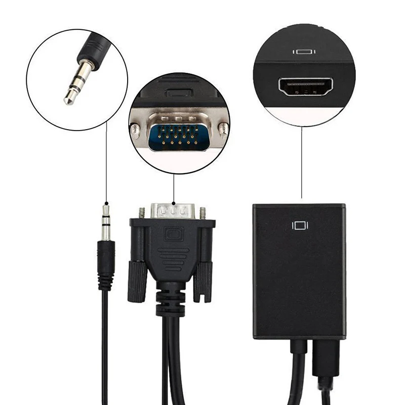 Comprar Divisor de Cable de Audio VGA a HDMI, convertidor de Cable de fuente de alimentación de carga, adaptador de aluminio para PC, portátil y proyector, 1080P
