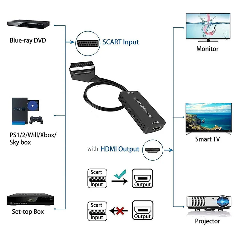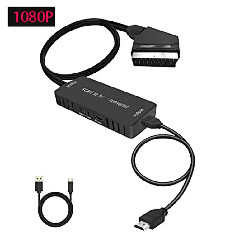 Comprar Divisor de Cable compatible con Scart In to HDMI, convertidor de Video HDTV 1080P, adaptador de Cable de datos extendido para consola de juegos, reproductor de TV