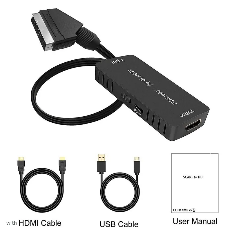 Scart In a HDMI compatible Out Cable Splitter HDTV 1080P Video Converter Extender Cable Adapter