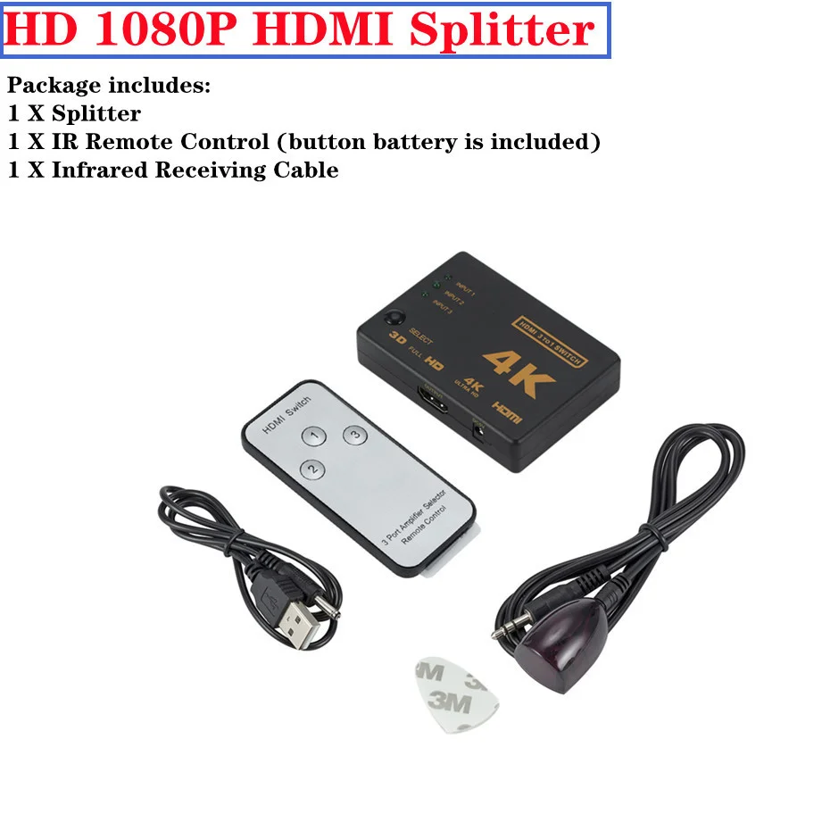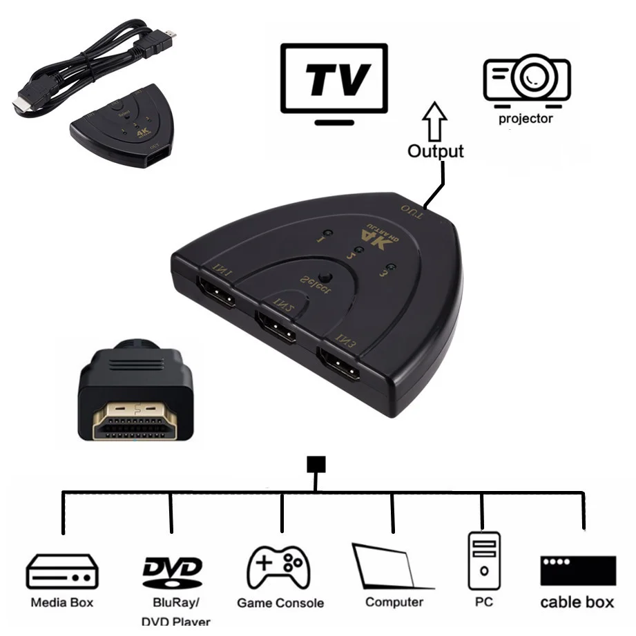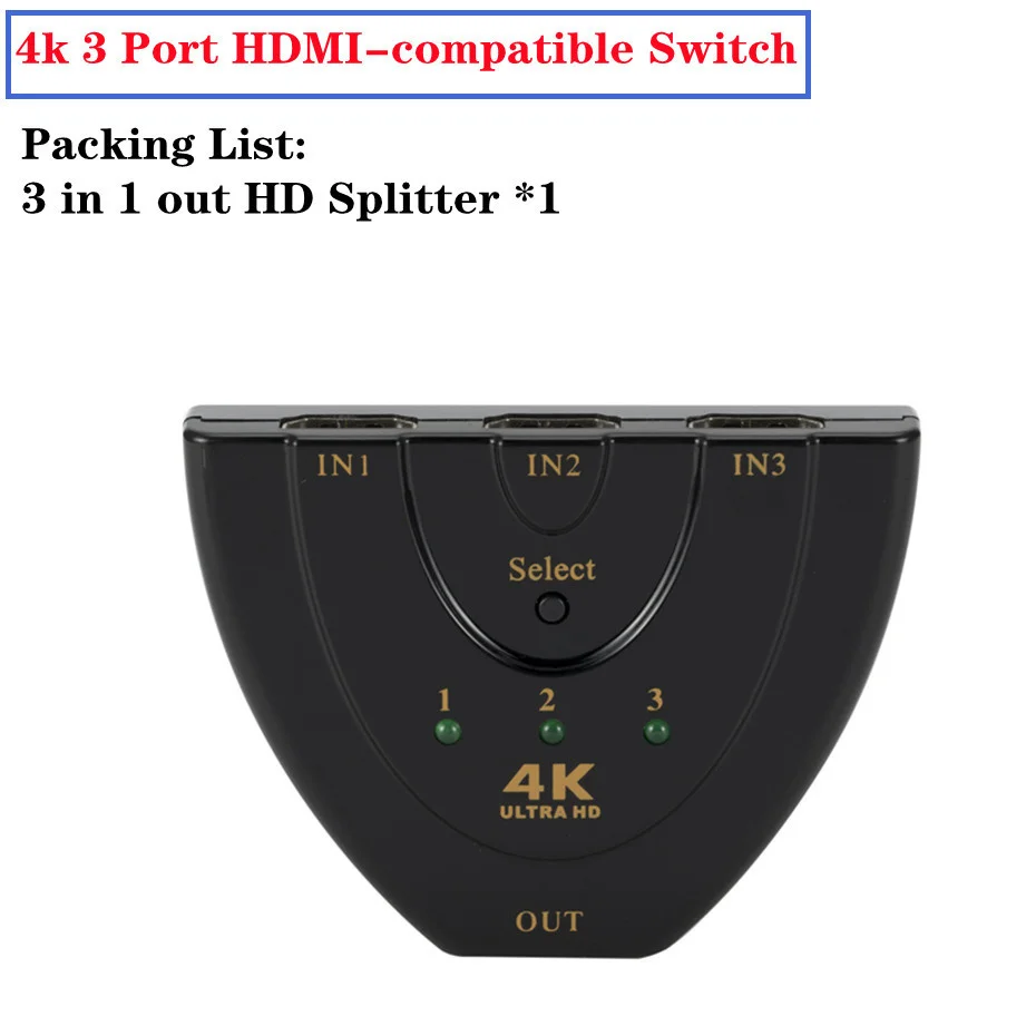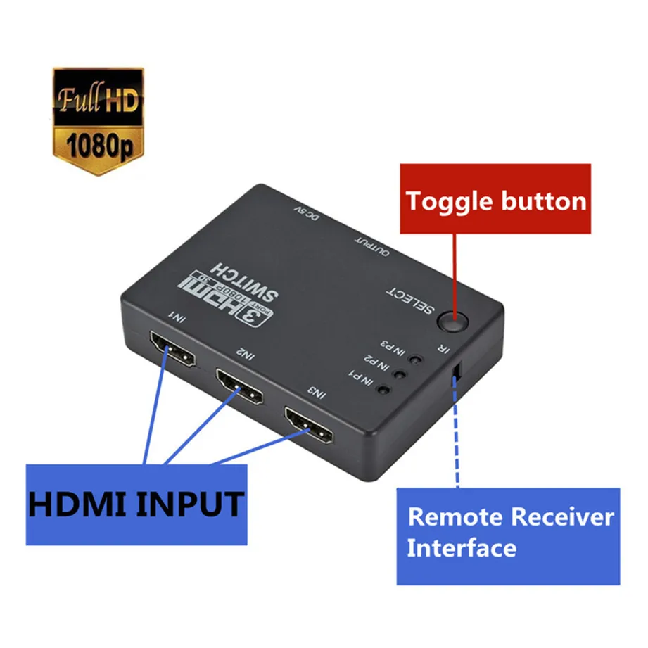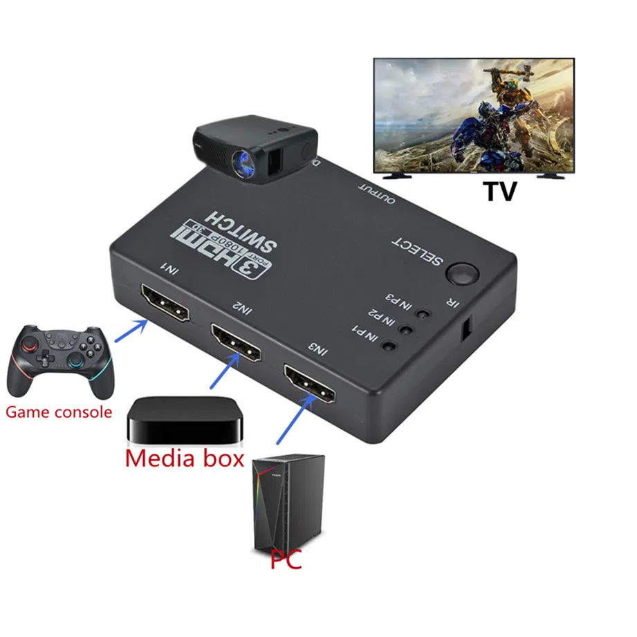 Comprar Divisor de Cable HDMI 4K 2K 3x1, adaptador de conmutador de vídeo HD 1080P, 3 Entradas y 1 puerto de salida, Hub HDMI para Xbox, PS4, DVD, HDTV, PC, portátil, TV