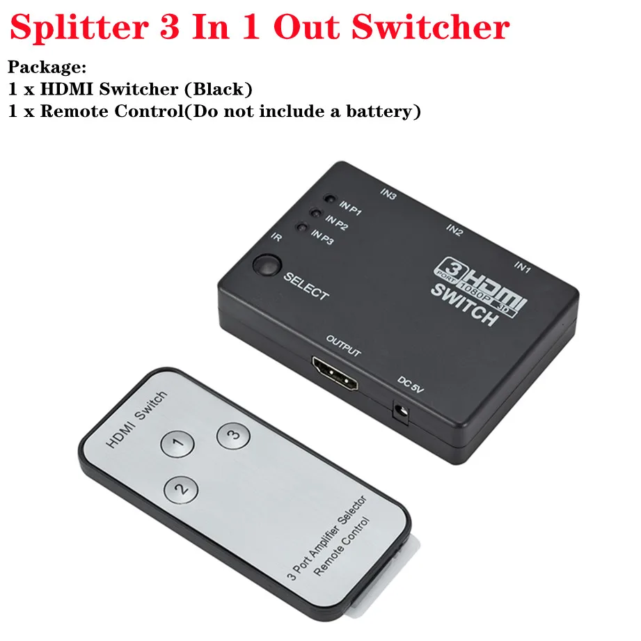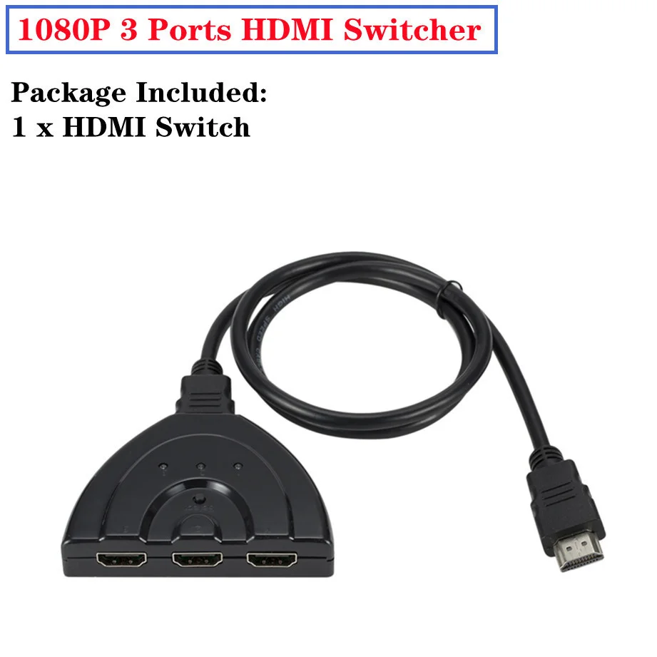 1 * Negro 1080P HDMI 3 puertos HDMI Splitter (solo cuerpo medio, no incluye cable HDMI)