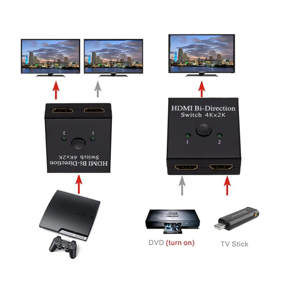 -Cuando conecta dos dispositivos host, también puede usarlo como un interruptor HDMI tradicional y cambiarlo a un solo televisor/monitor.