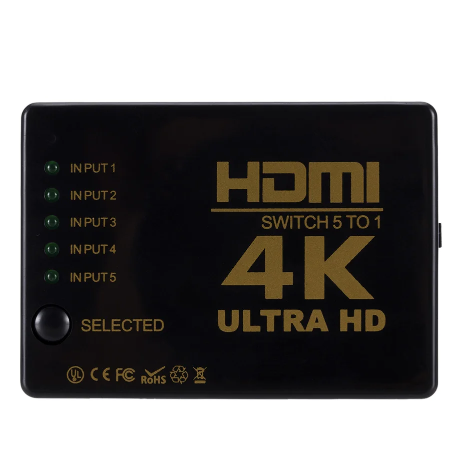 El conmutador HDMI de cinco vías x1 puede tomar múltiples fuentes de señal HD con una salida de señal de alta definición que soporta tasa de fragmentación, 3840 * 3840 p 4 k * 2 k, y puede conectar fácilmente tres fuentes HD para cambiar libremente a un monitor o proyector de alta definición.Además, conecte su puerto a un cable HDMI para amplificar la señal HDMI.