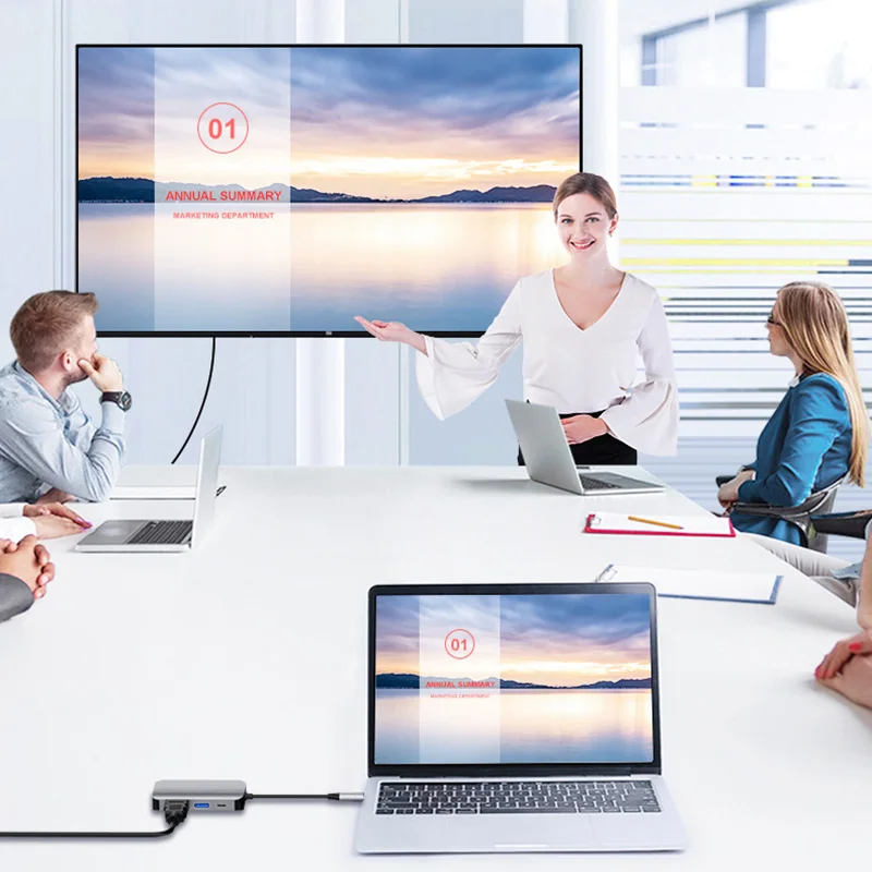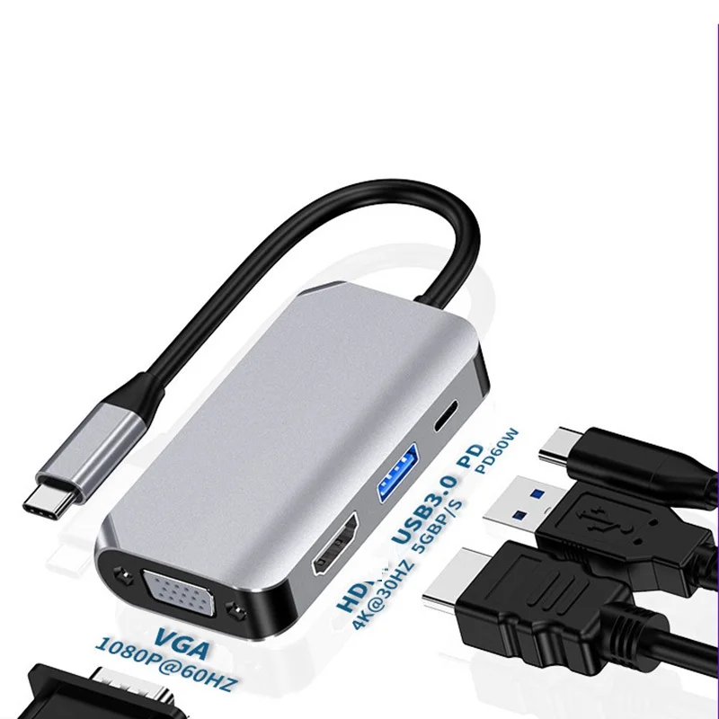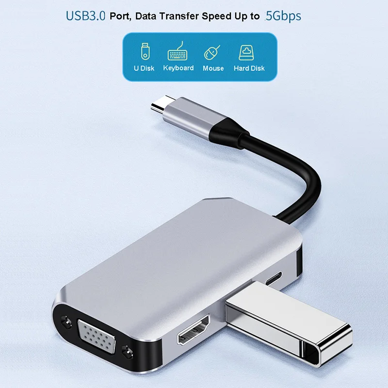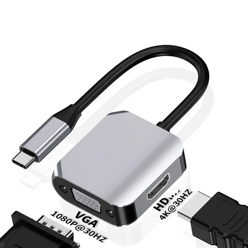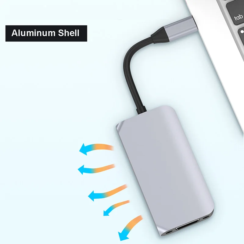 Hub tipo C a HDMI compatible con VGA PD Switch USB C Cable Splitter Extender Converter Phone Charging Dock Mouse Keyboard Adaptador de conexión de disco USB