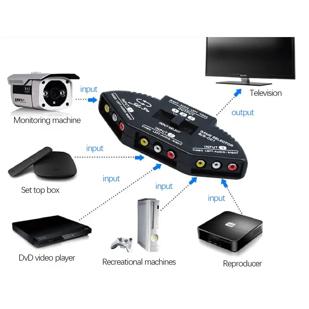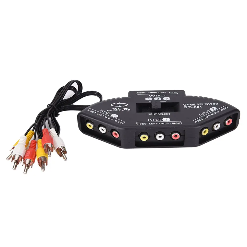 Comprar Divisor de Caja selectora de interruptor negro AV RCA de Audio y Video de 3 vías con Cable/3 RCA