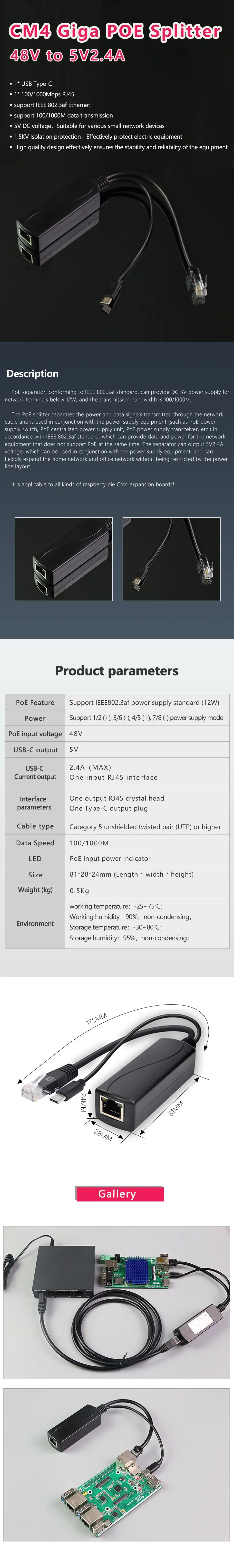 Divisor CM4 Giga POE 48V a 5V2.4A