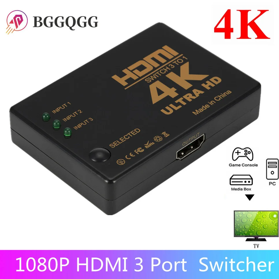 Divisor compatible con HDMI 3x1, adaptador de conmutador de vídeo HD 1080P, 3 Entradas, 1 puerto de salida, concentrador HDMI para Xbox PS4, DVD, HDTV, PC, portátil, TV