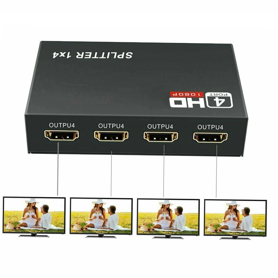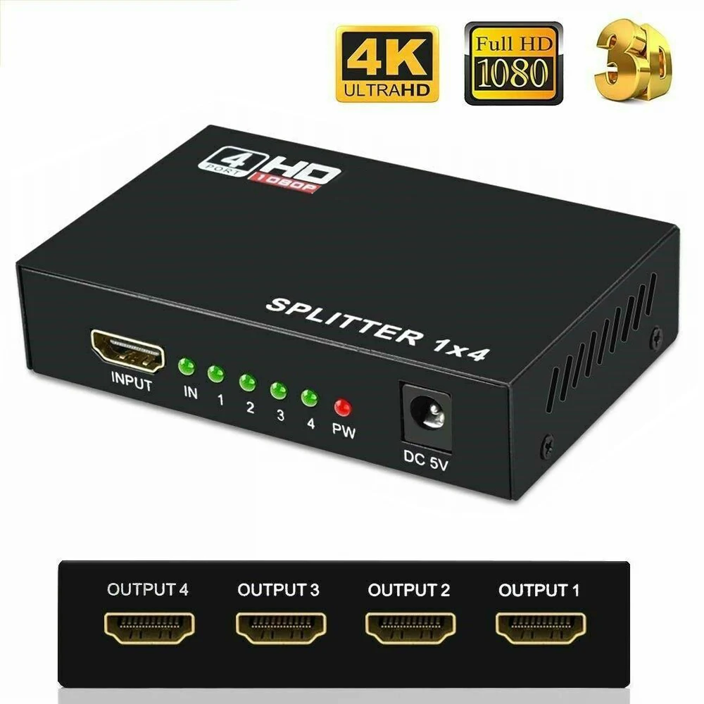 Comprar Divisor compatible con HDMI 4K 1x4 1x2 HD 1080P, conmutador de vídeo, Adaptador convertidor 1 en 4 para DVD, PS3, Xbox, portátil, PC a TV