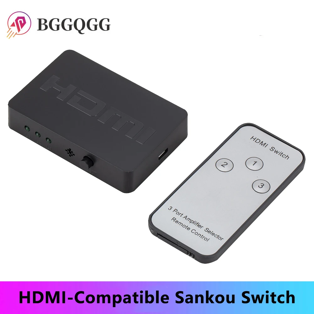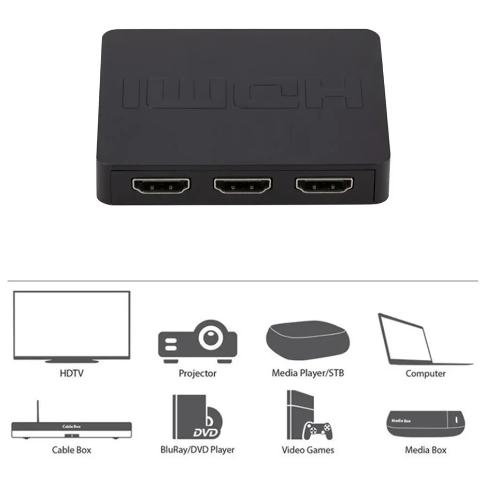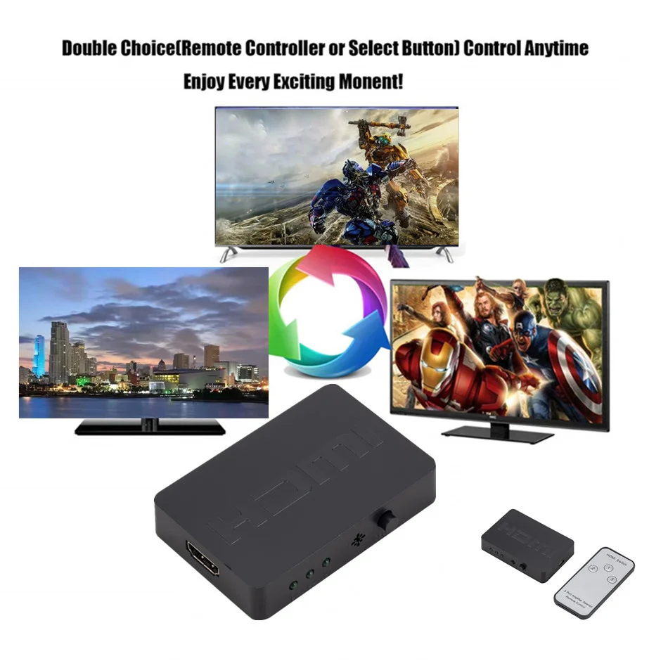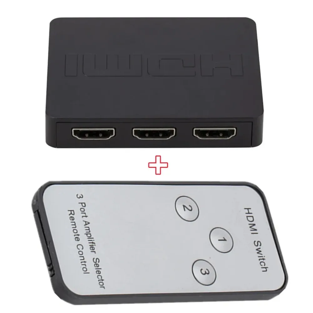 Divisor compatible con HDMI Caja de concentrador de 3 puertos Interruptor automático 3 en 1 Conmutador de salida 1080P Hd 1,4 Control remoto para Project Hdtv Xbox360 Ps3