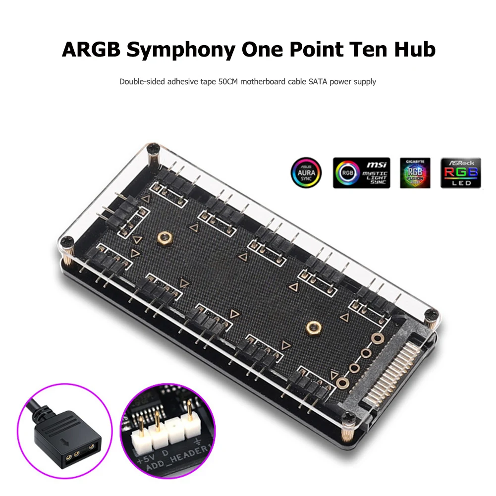 10 puertos RGB Fan HUB PC ordenador de escritorio 5V 3PIN ARGB extensión divisor SATA adaptador de corriente para Gigabyte MSI ASUS