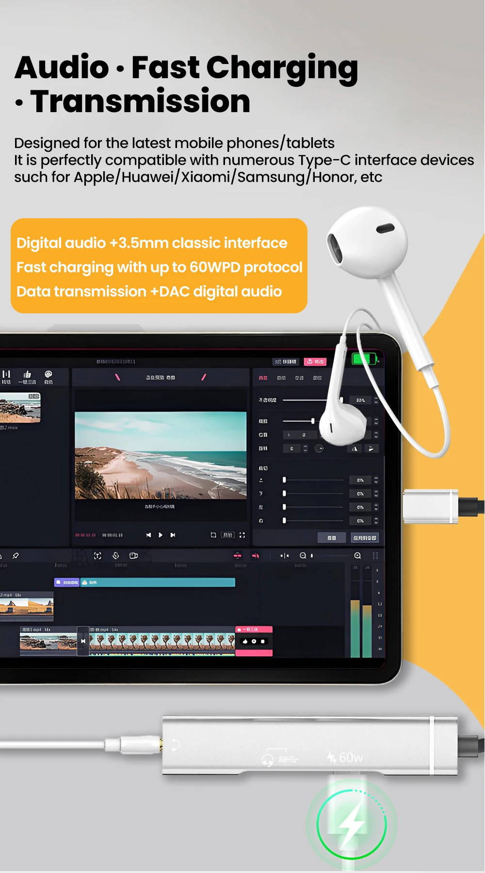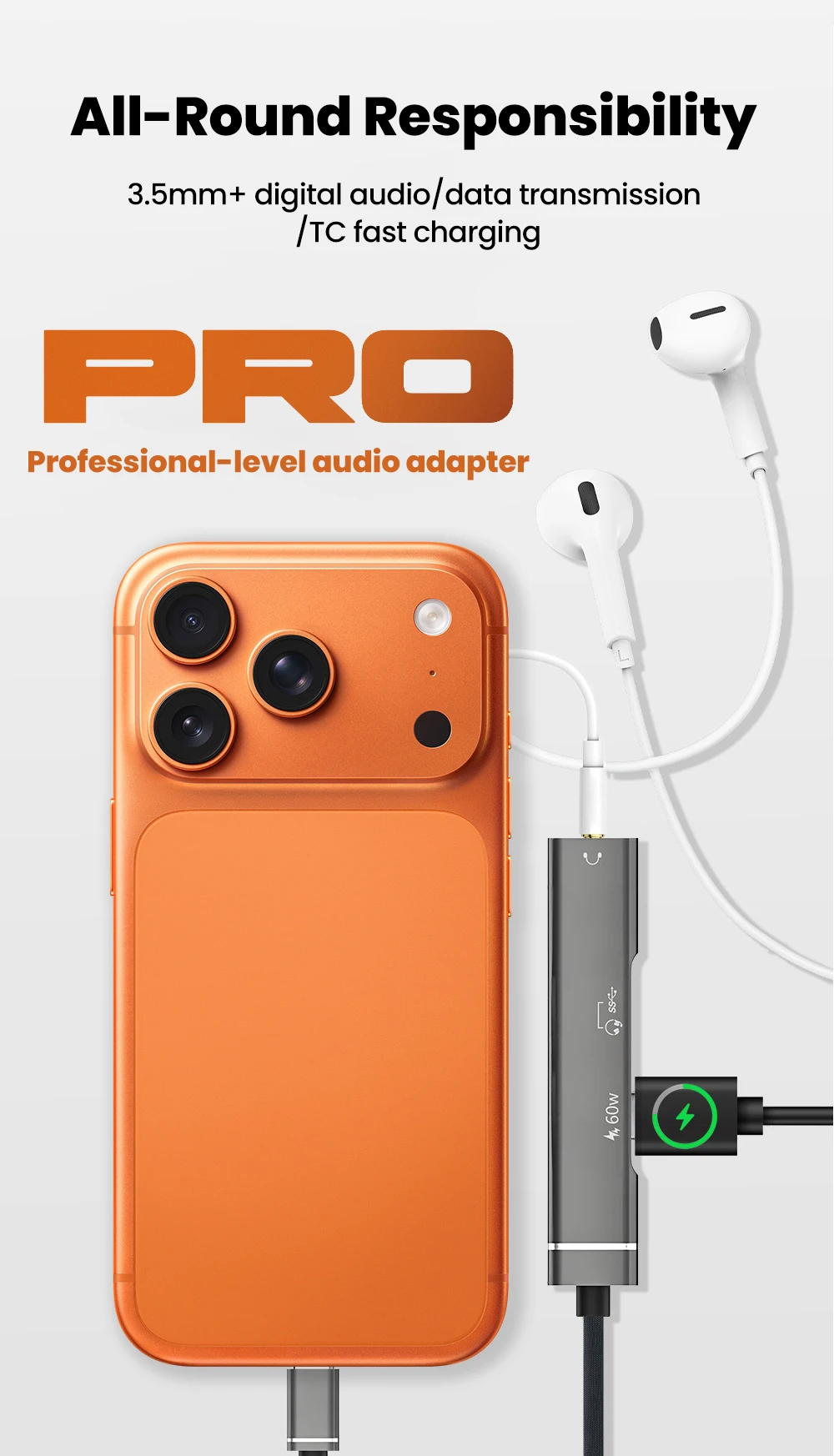Divisor de concentrador tipo C 3 en 1, adaptador de Audio tipo C DAC, adaptador de Audio 3,5 de alta definición para iphone 15 16 17 Huawei Xiaomi Samsung