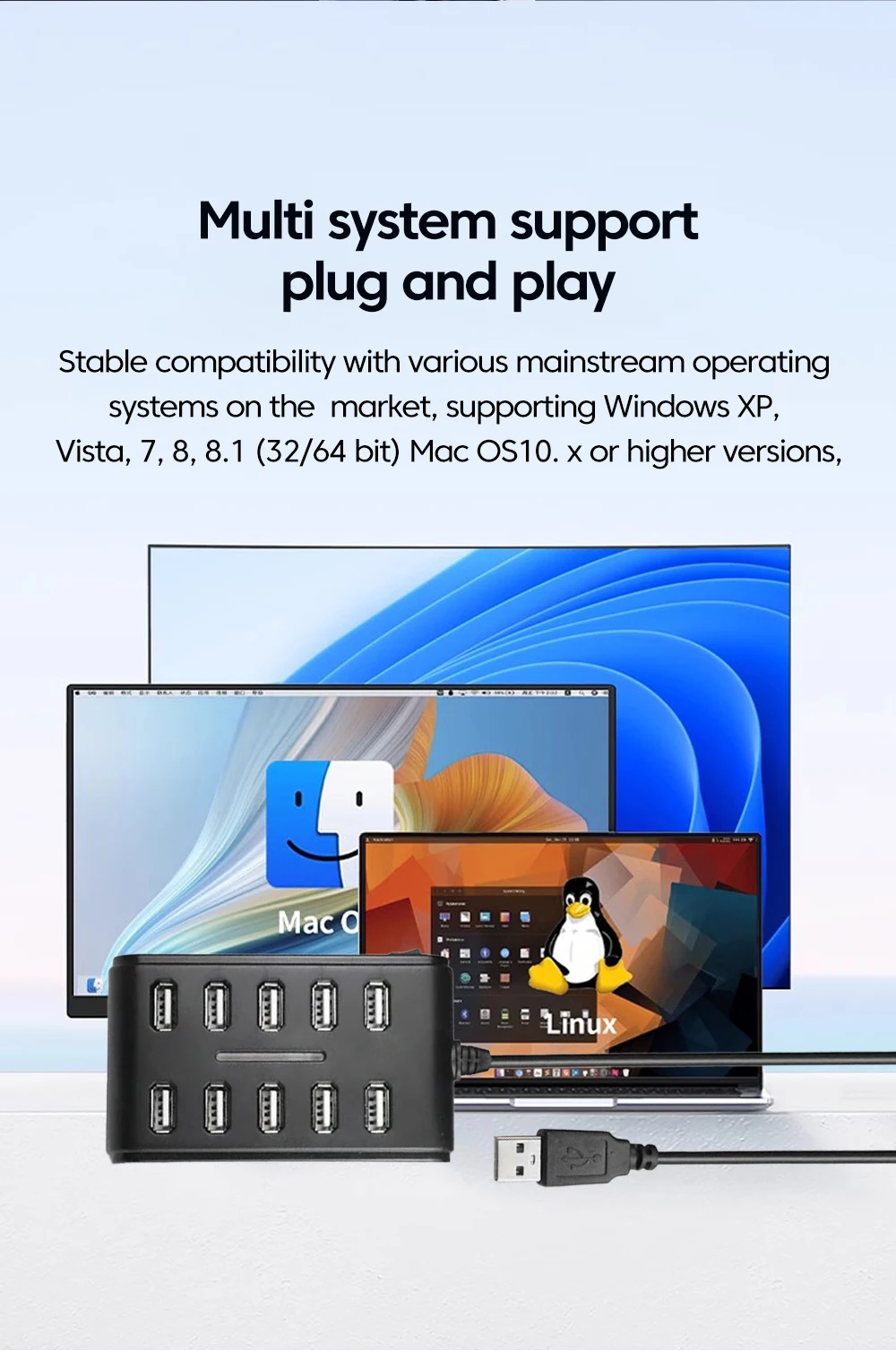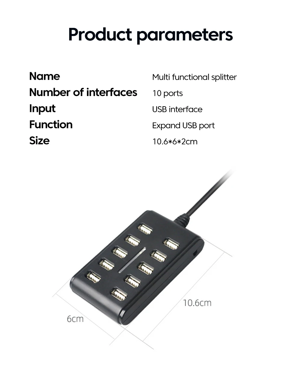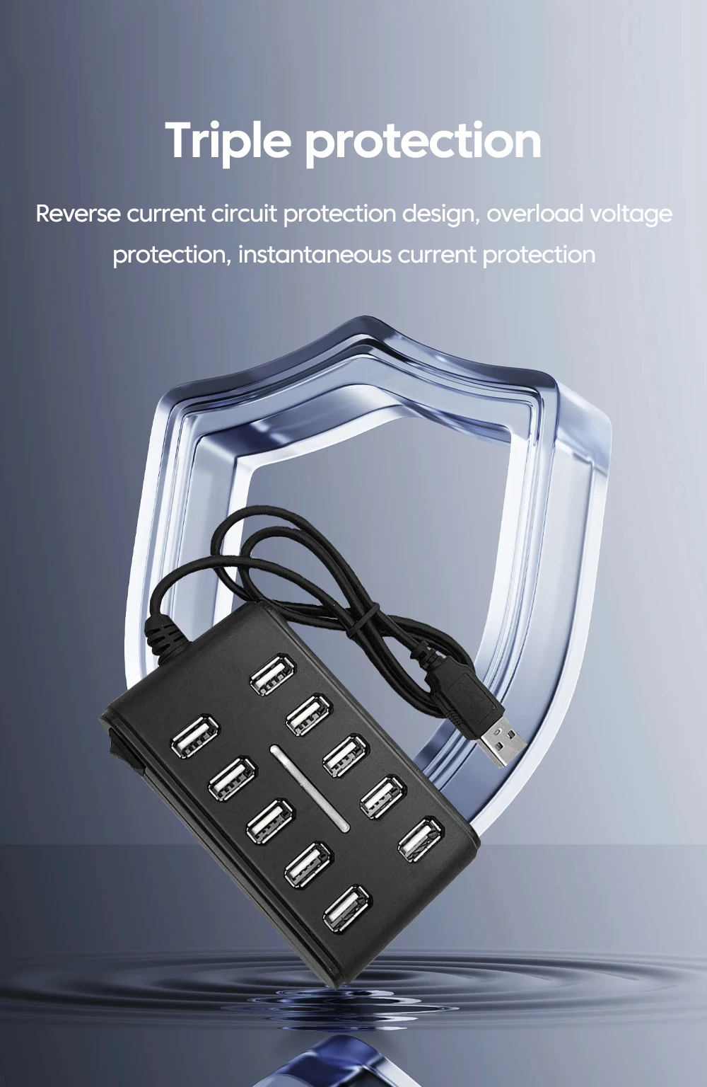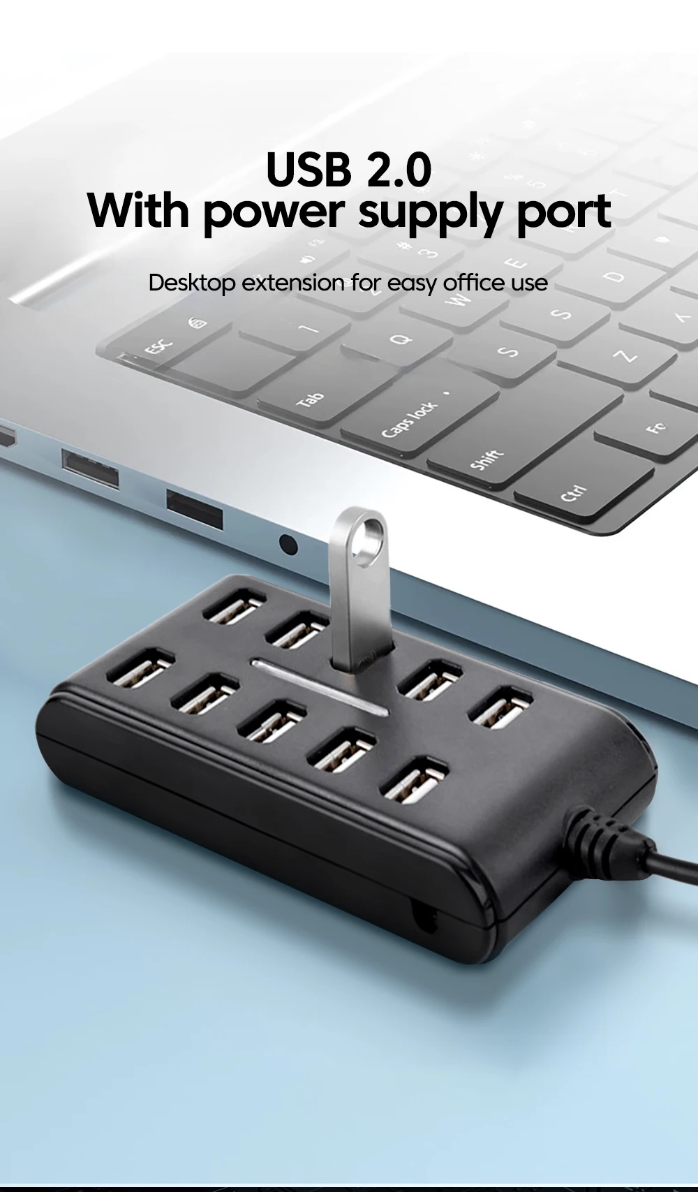 Comprar Divisor de concentrador USB 2,0 10 en 1, interruptor Individual de concentrador Multi Usb para Macbook, accesorios para portátiles, adaptador de estación de carga de energía