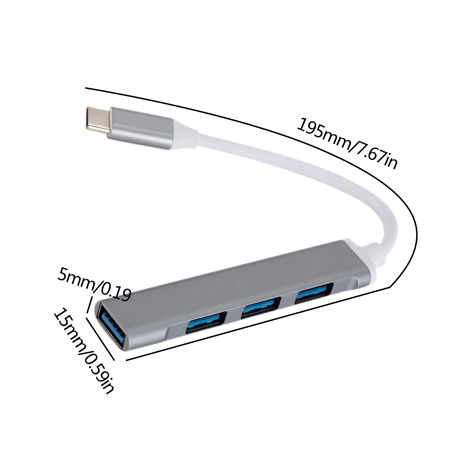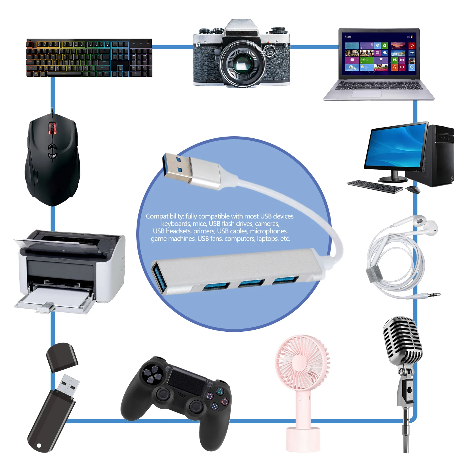 Hub USB de 4 puertos, divisor de HUB de datos portátil de 5Gbps, Dongle adaptador multipuerto de estación de acoplamiento 4 en 1 de aluminio con USB 3,0, 3 puertos USB 2,0 para teclado, impresora, portátil, consola de juegos