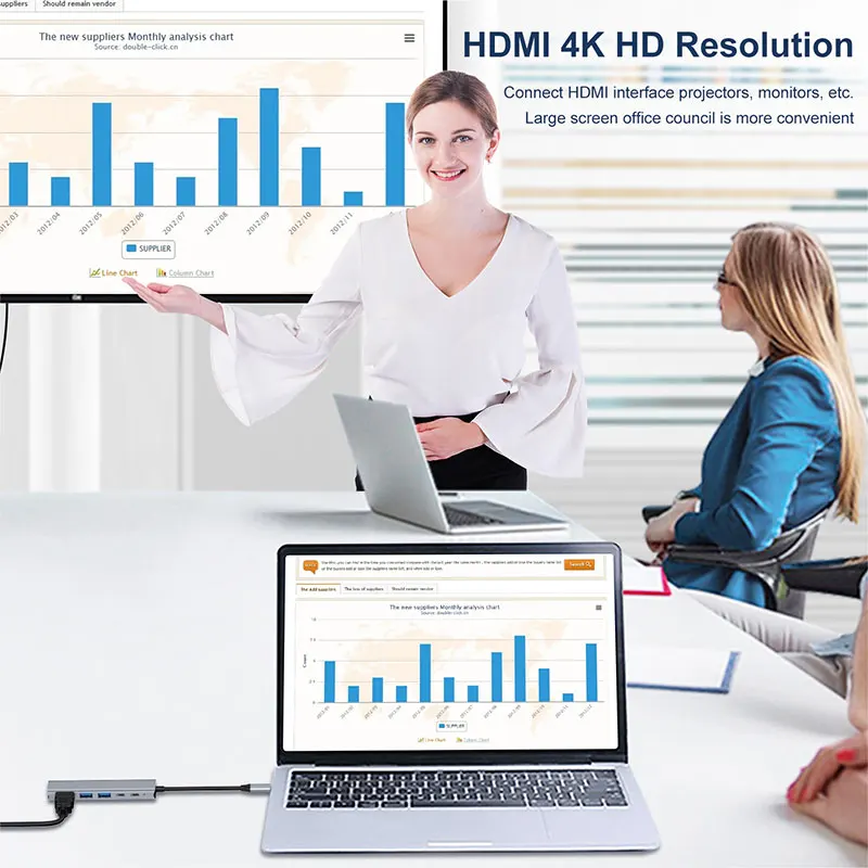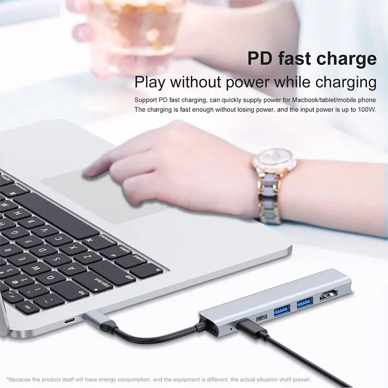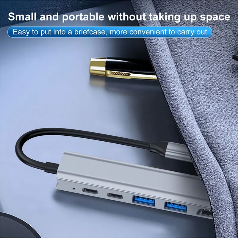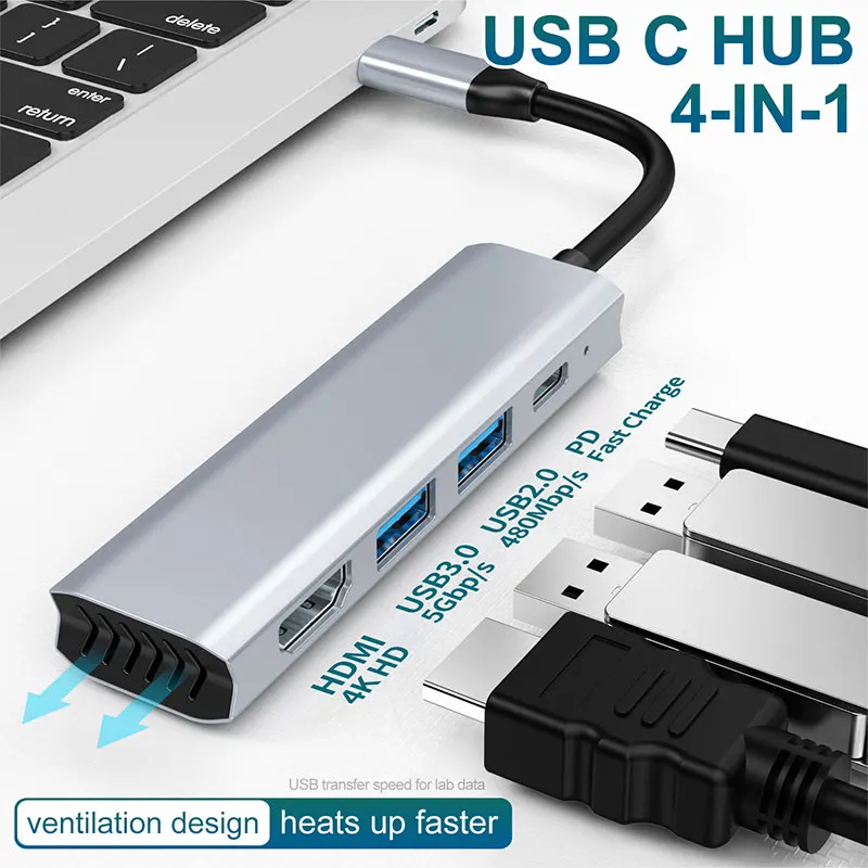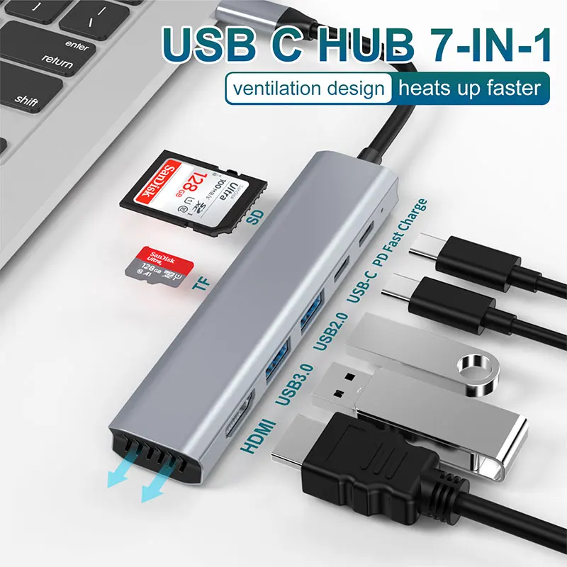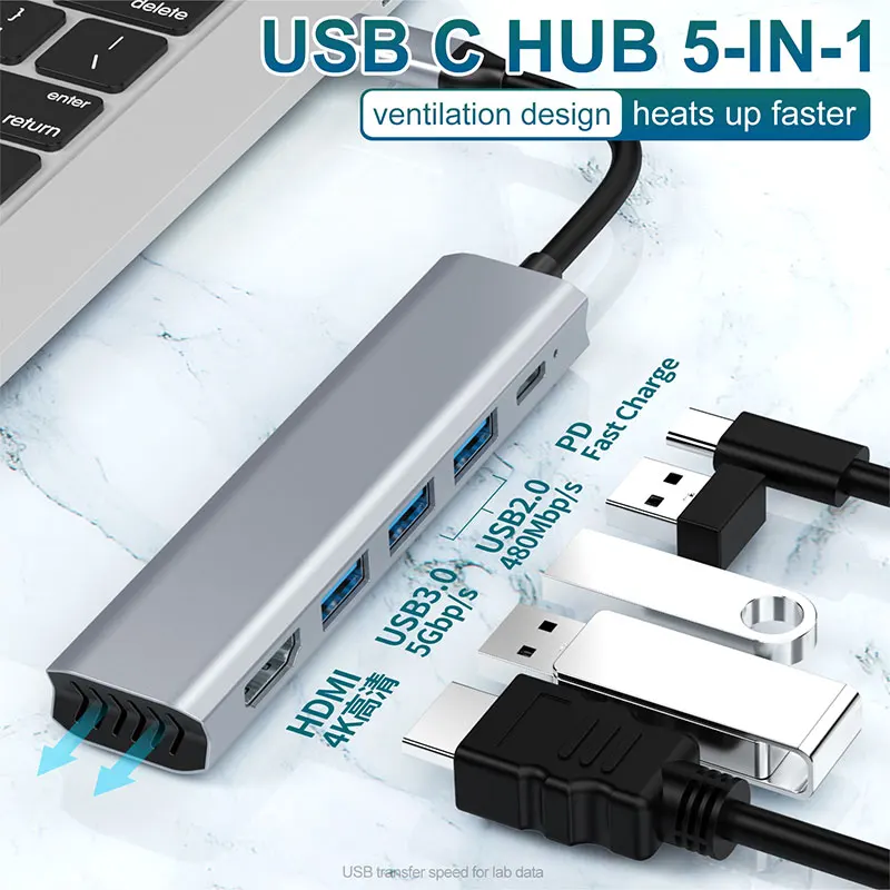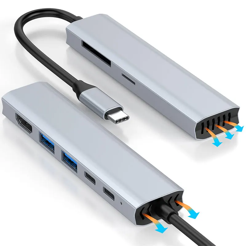 Divisor de concentrador USB tipo C con USB3.0/2,0 4K HDMI PD transferencia de datos de alta velocidad para PC, portátil, Macbook, ventilación, disipación de calor
