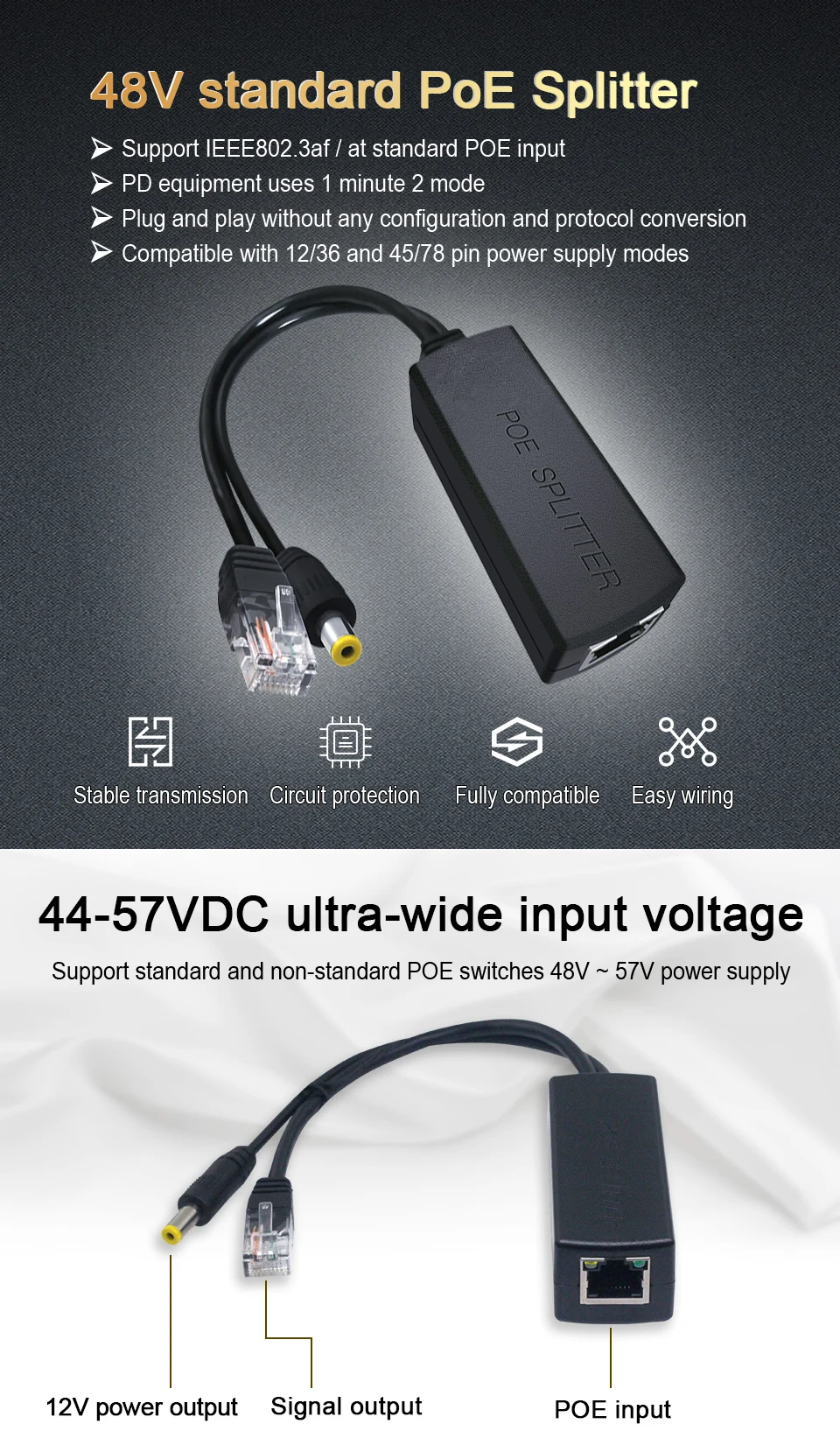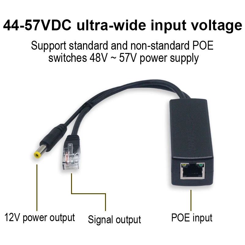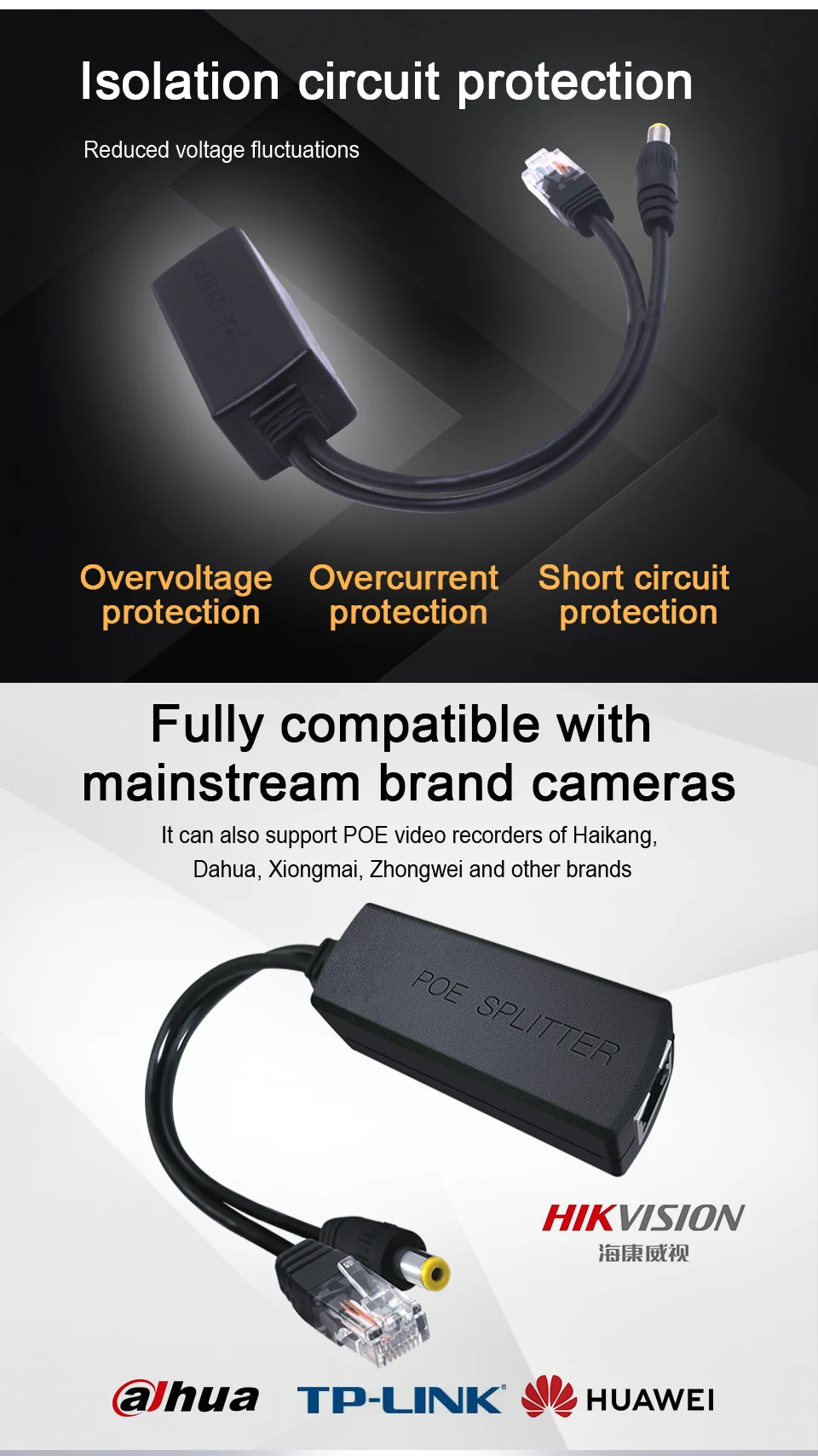 Comprar Divisor de conectores PoE de 48V a 12V, divisor extensor de inyector IEEE802.3af/at 10/100M para divisores POE Hikvision