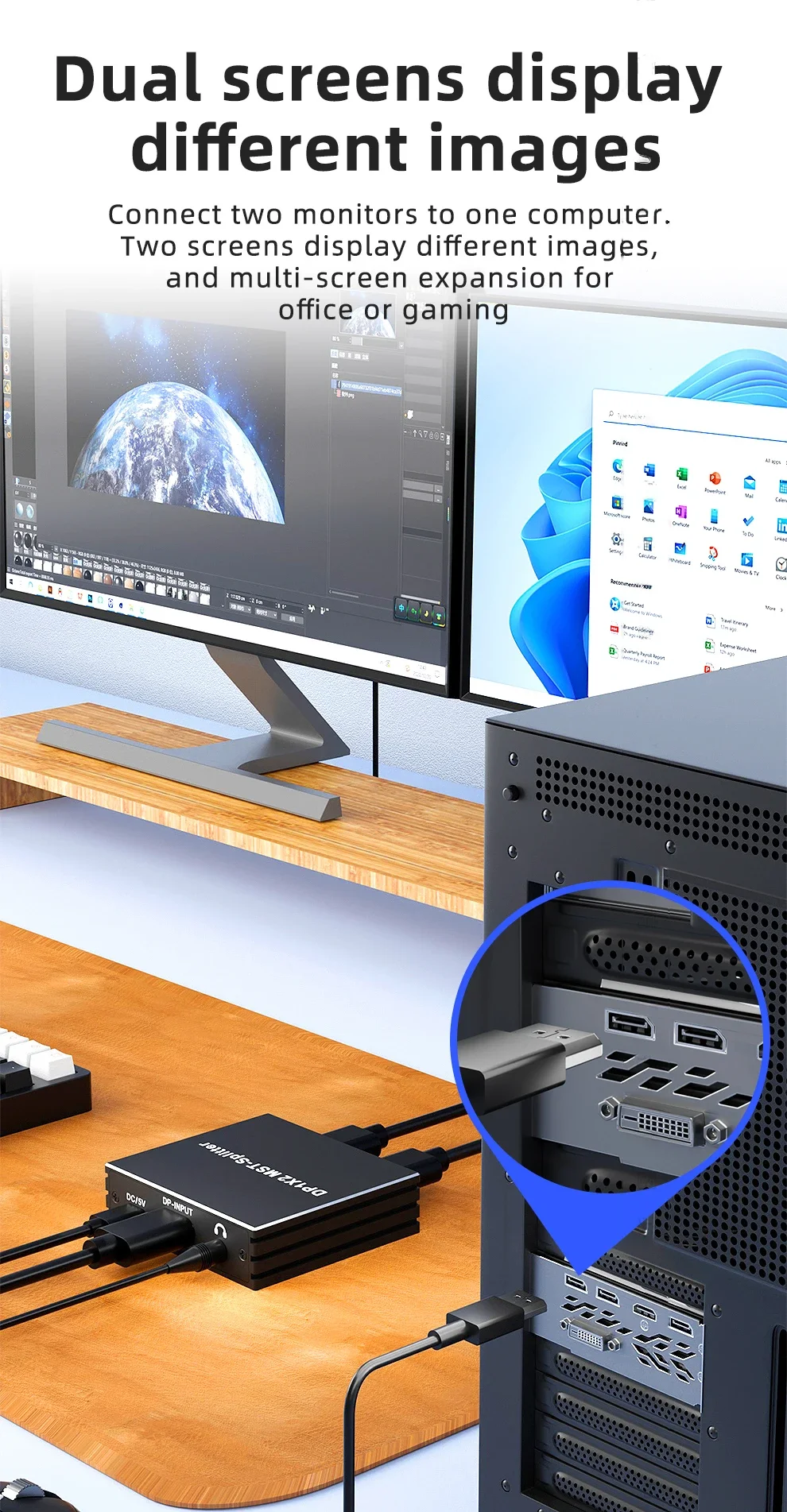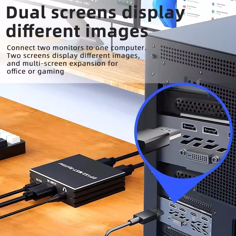 Comprar Divisor DisplayPort 4K @ 60Hz 1 en 2 salidas DP 1,4 MST Hub 1x2 extender DP a HDMI Monitor Dual DP a DP para PC tarjeta de vídeo TV portátil