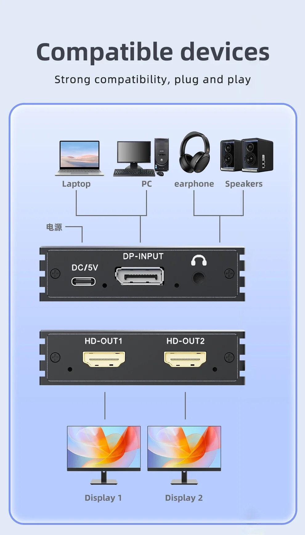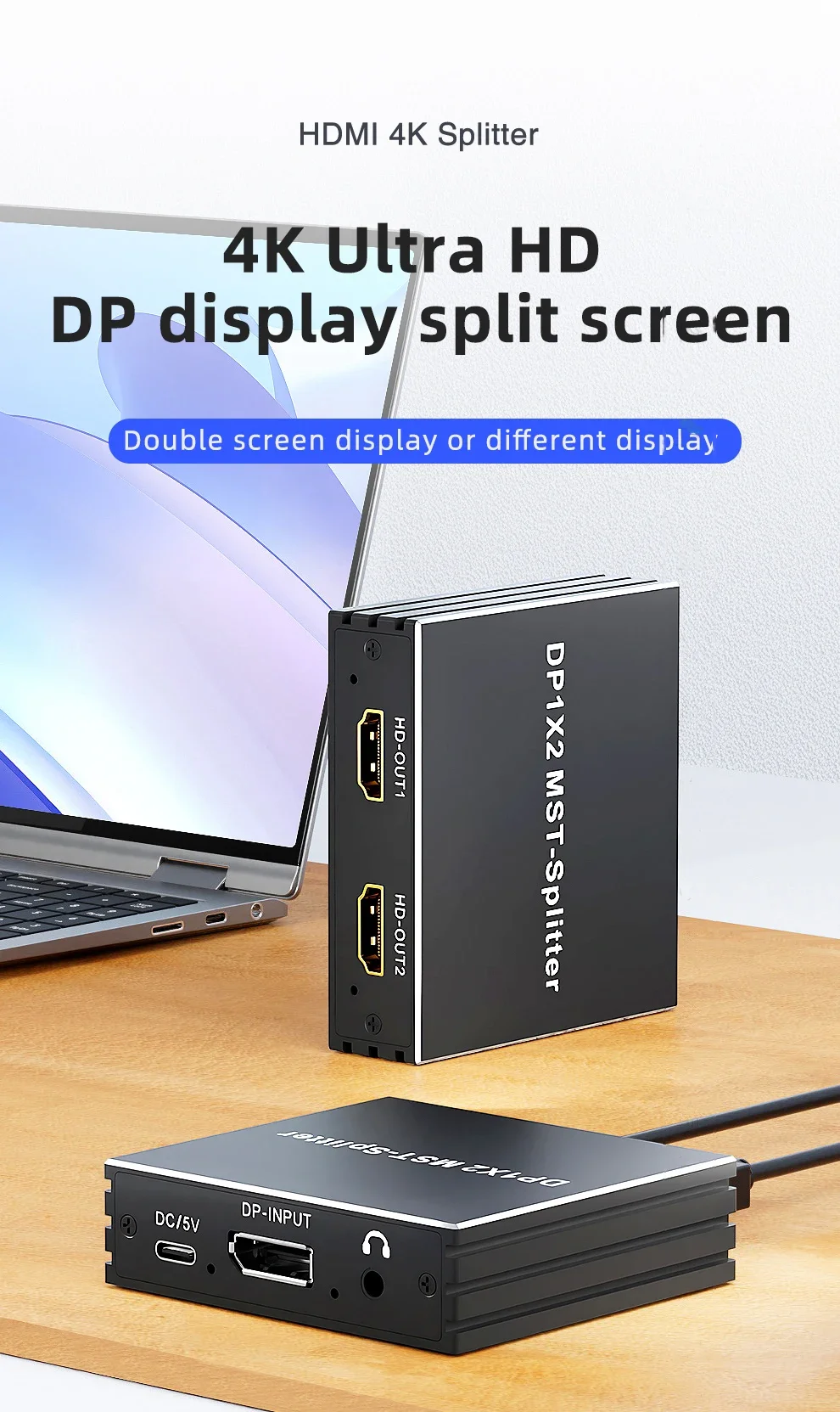 3.DP a 2 HDMI: la interfaz de salida es compatible con HDMI * 2