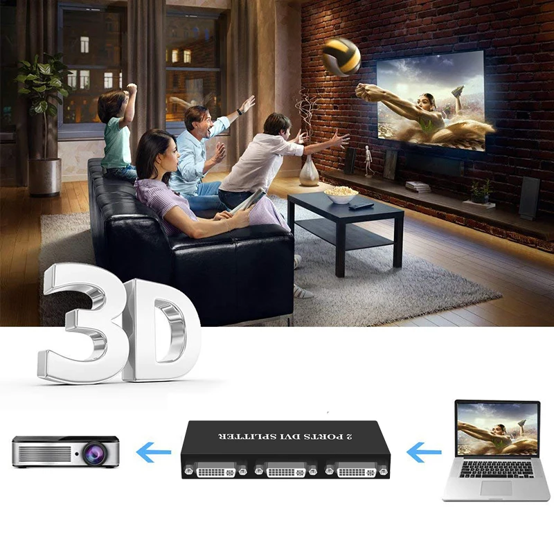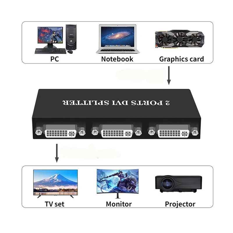 Divisor DVI 1x2 Adaptador extensor DVI-D 1 EN 2 SALIDA HD 1080P para proyector monitor tarjeta gráfica de computadora