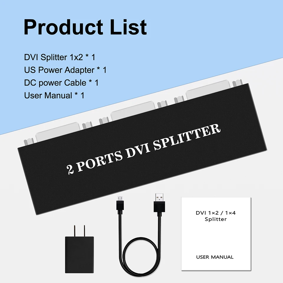 Divisor DVI a DVI 2 puertos 1X2 Distribuidor DVI-D 1 entrada 2 salida Divisor DVI HD 1080P 1 entrada 2 salida para proyector Monitor ordenador