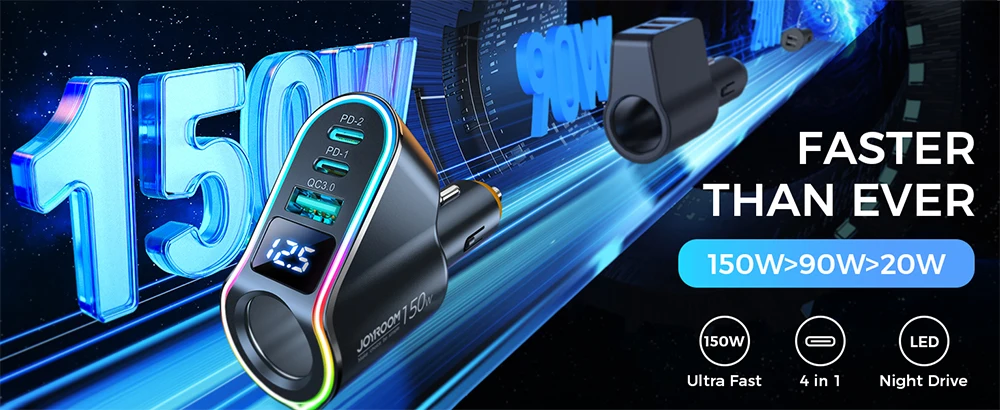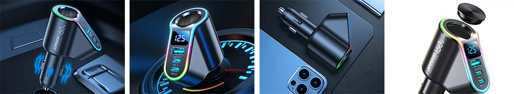 Joyroom-Cargador de coche USB de 150W, divisor de encendedor de cigarrillos, adaptador de cargador de coche rápido de 12V, compatible con iPhone/Samsung/GPS/cámara de salpicadero