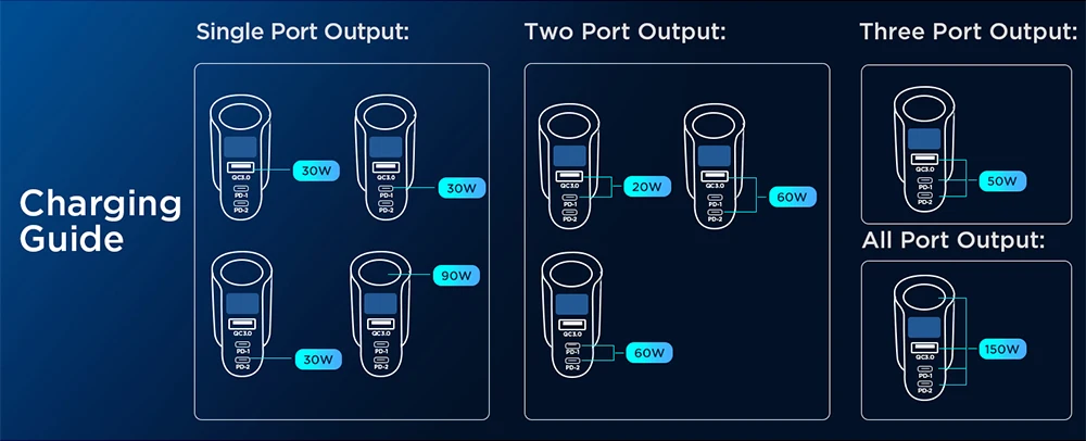 Comprar Divisor de encendedor de cigarrillos, 150 W 4 en 1 Cargador USB para encendedor de cigarrillos Adaptador de cargador de coche de 12 V, PD3.0 y QC3.0 Cargador de coche USB C súper rápido de 30 W compatible con iPhone14