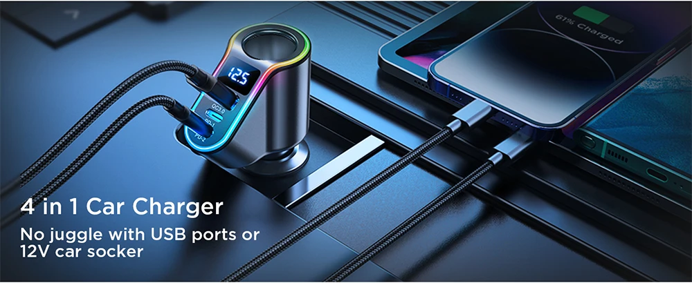 1. 【 Adaptador de encendedor de cigarrillos 4 en 1 】El divisor de encendedor de cigarrillos JOYROOM contiene 3 puertos USB y 1 enchufe tradicional. Puede enchufar un navegador por satélite o un asiento con calefacción que use una toma de corriente del automóvil y, al mismo tiempo, también puede usar otros dispositivos alimentados por puerto USB. No es necesario hacer malabares entre ellos.