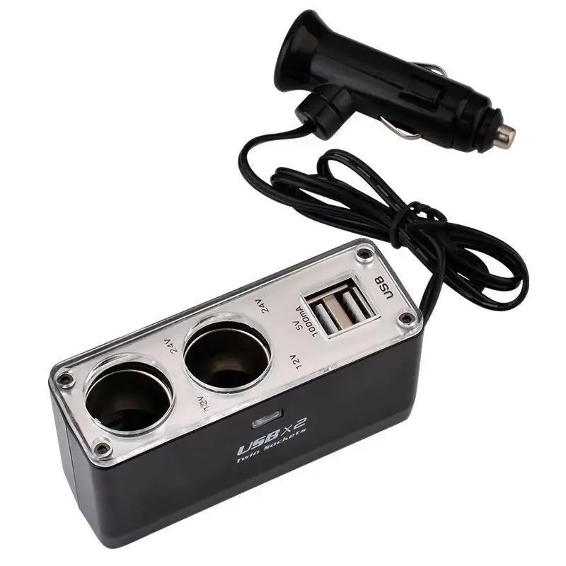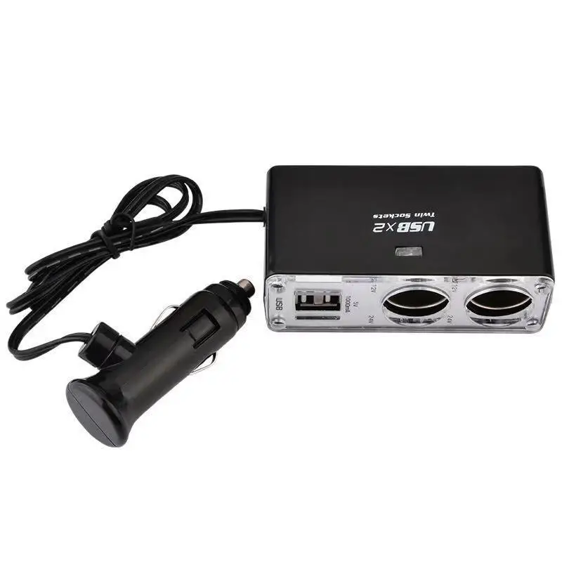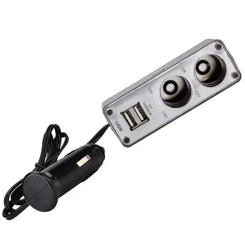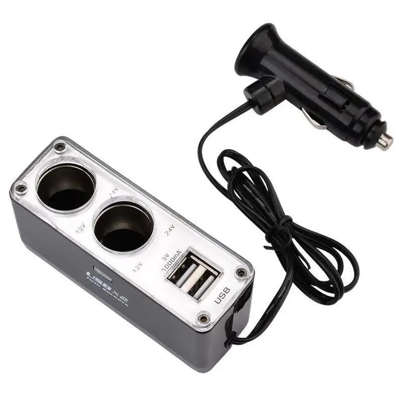 Comprar Divisor de encendedor de coche de 2 vías, adaptador de corriente de cargador DC + USB, enchufe de 2 puertos 12V-24V, encendedor de cigarrillos, gran oferta
