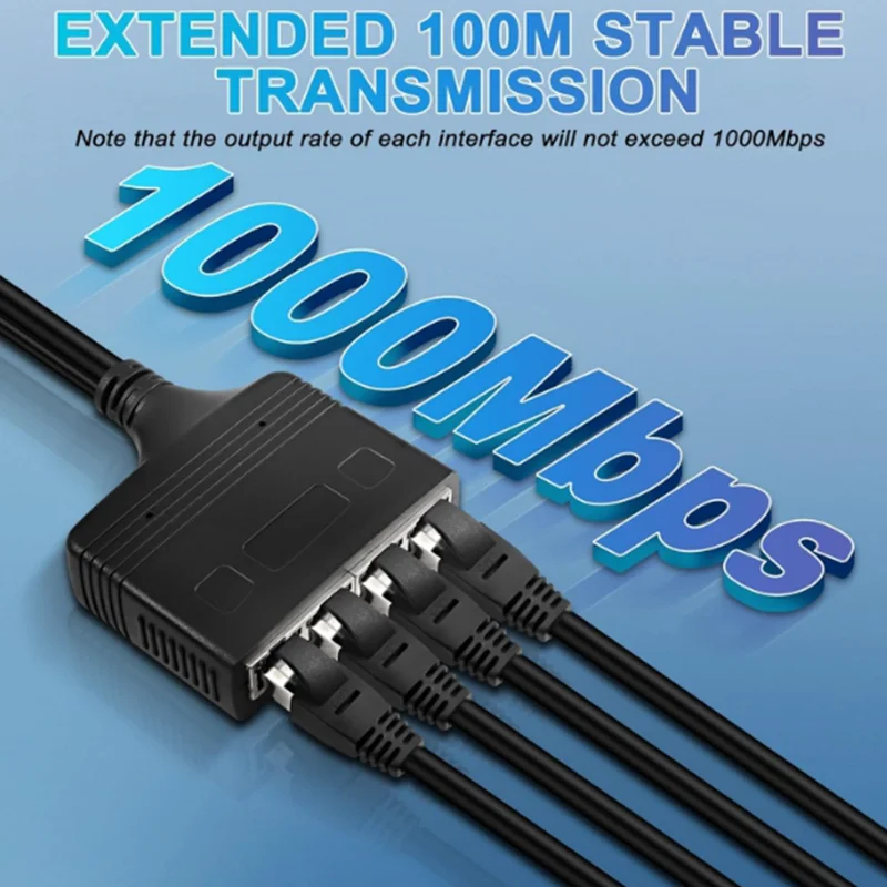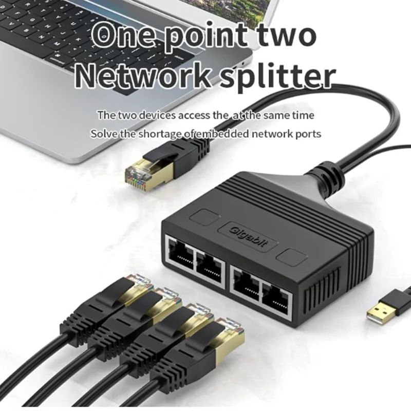 INCREÍBLE TASA DE TRANSMISIÓN: Velocidad de transmisión de 1000 Mbps Adaptador divisor RJ45 Cables Ethernet LAN hembra duales de 1 a 2 vías, cuatro juegos de cables (1 a 4) pueden transmitir hasta 1000 Mbps. Conexión en red simultánea, sin necesidad de enchufar y desenchufar, ¡buena navegación!