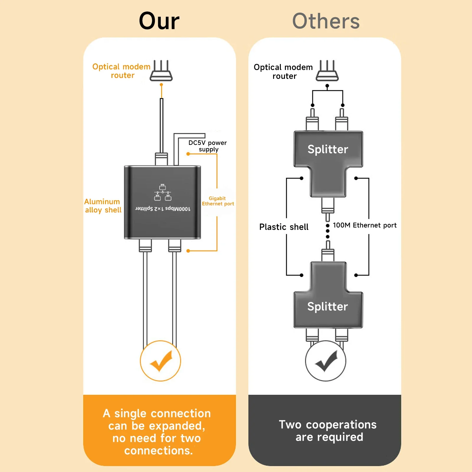 Admite que varias computadoras usen un cable Ethernet al mismo tiempo.Puede elegir diferentes estilos para la cantidad de dispositivos conectados.La velocidad de transmisión del dispositivo puede alcanzar los 1000 Mbps, lo que resuelve perfectamente los problemas de cableado de red insuficiente y transmisión de señal inestable, evita conexiones y desconexión frecuentes y extiende la vida útil del producto.