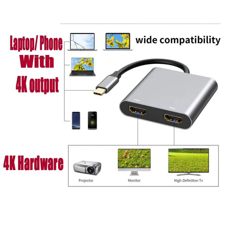 Ambos puertos deben conectarse con un dispositivo 4K. Eso significa que el puerto TIPO C debe conectarse con una computadora portátil/tableta/teléfono tipo C que debe tener función de salida 4K