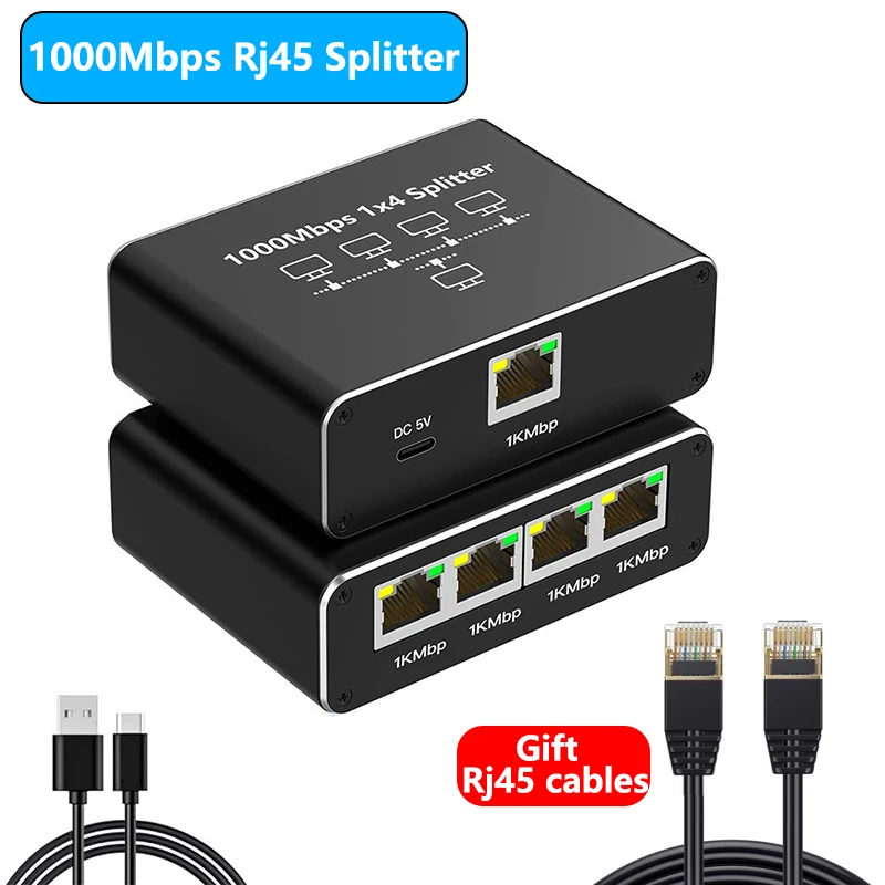 Comprar Divisor de extensión Gigabit Ethernet RJ45 1 a 2/3/4 1000Mbps LAN divisor de Internet con Cables Rj45 para PC portátil enrutador TV-box