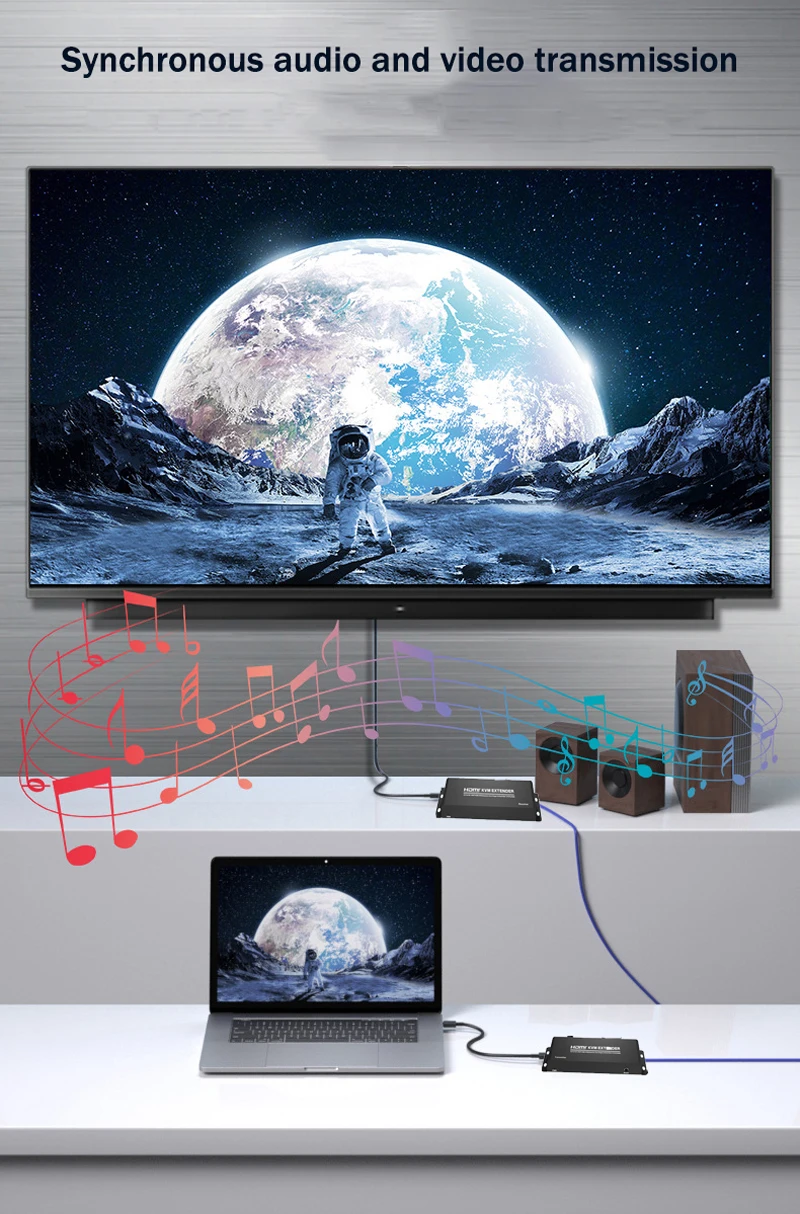 1. Transmisión de señal: cables CAT5e / CAT6 (recomendado) de hasta 200 metros en lugar de cables HDMI.
