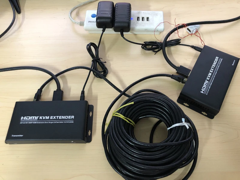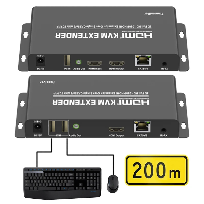 Comprar Divisor extensor KVM HDMI de 200M, Cable de red Cat6 Cat5e, transmisor, receptor, convertidor de PC a TV, compatible con teclado y ratón USB