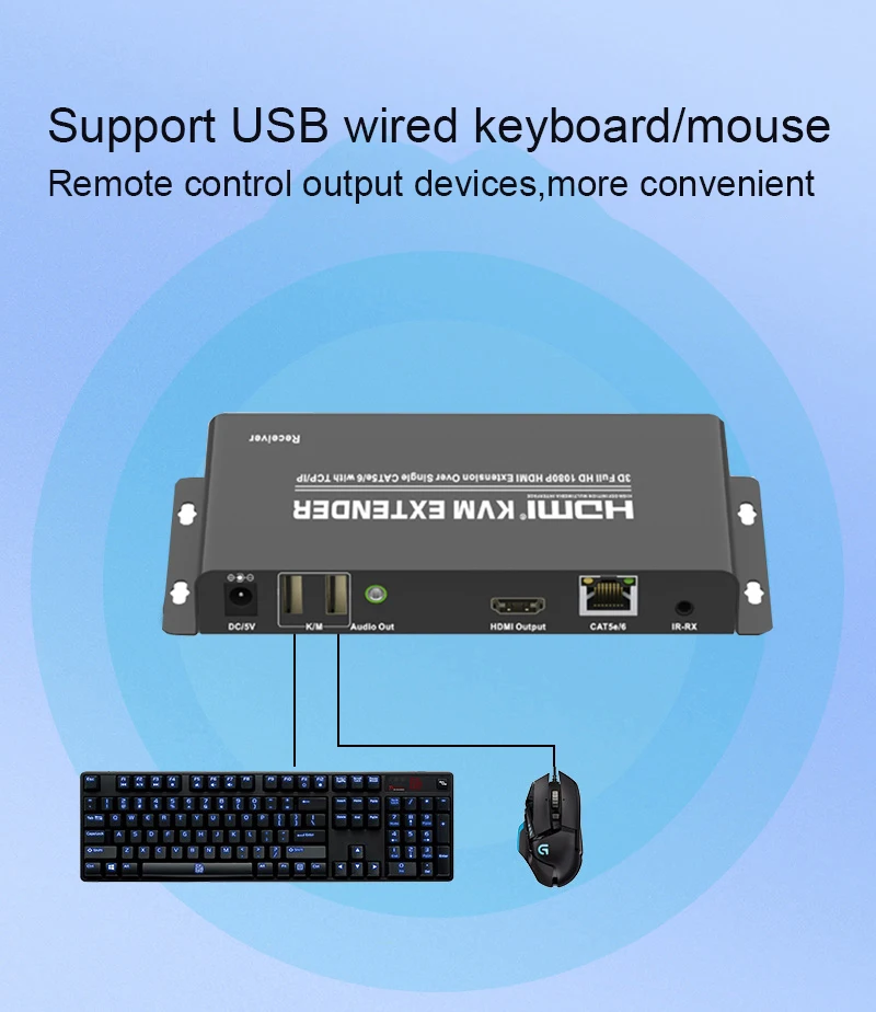 Este extensor HDMI KVM se basa en el estándar TCP/IP. Transmite máx. 200 metros desde su