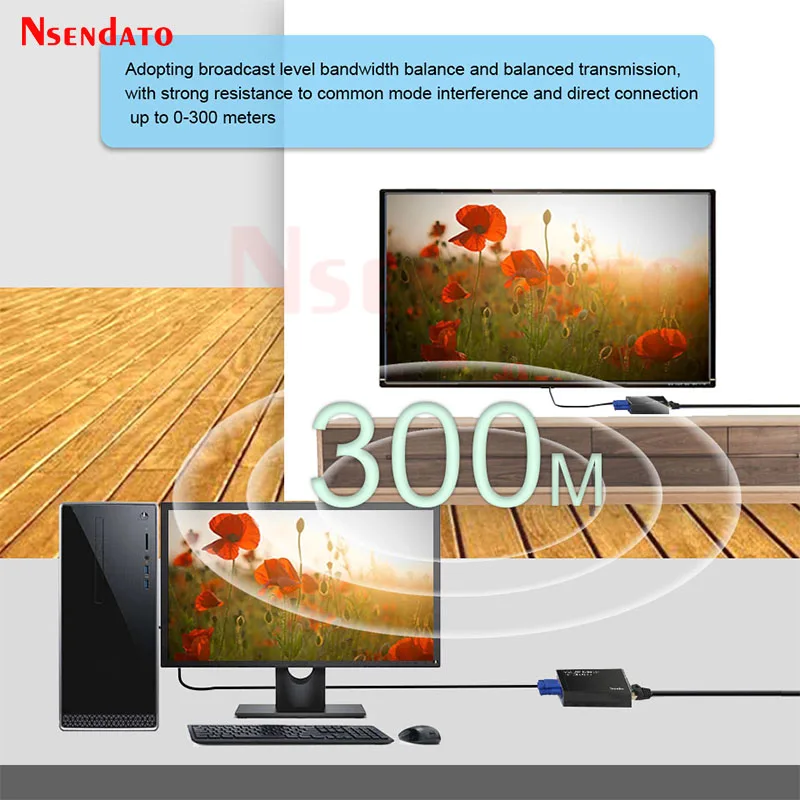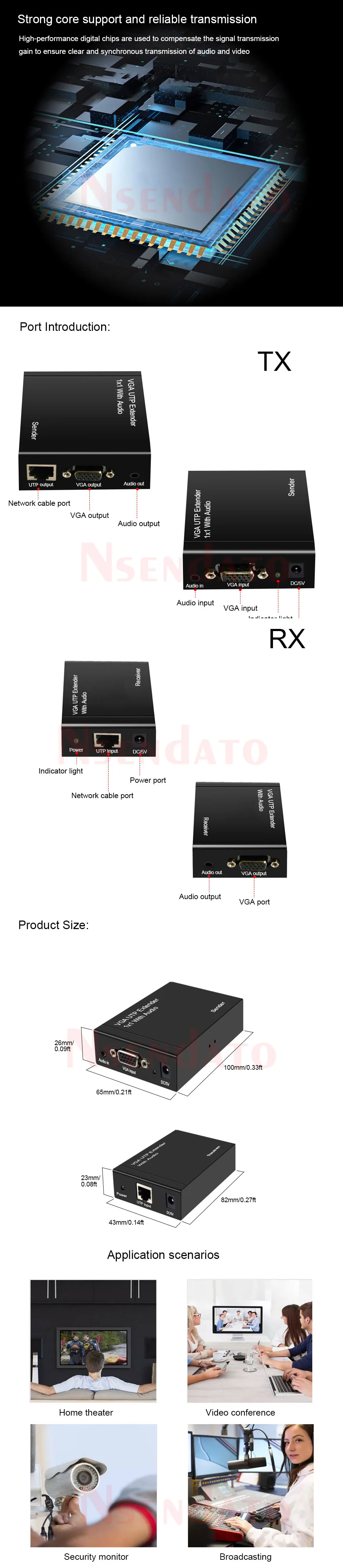 Divisor extensor VGA UTP con Audio sobre Cat5/5E/6 RJ45 Ethernet Cable de extensión VGA 300m soporte para monitores proyector HDTV