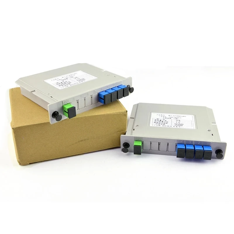 Comprar Divisor de fibra 1x4 LGX box GEPON FTTH SM SC/UPC SC/APC acoplador óptico PLC 1*4 casete nivel de telecomunicaciones GPON divisor ELINK 10 Uds