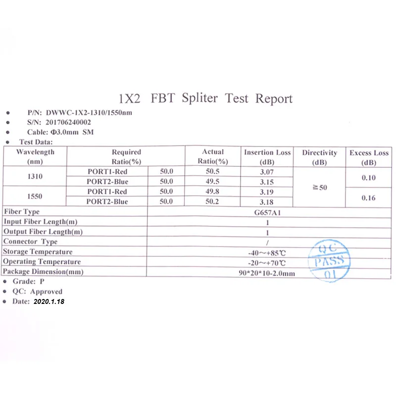 Divisor de fibra óptica cónica 1x2 SC/UPC/APC Grado de telecomunicaciones 50:50 Ratio Pigtail 10 Uds al por mayor