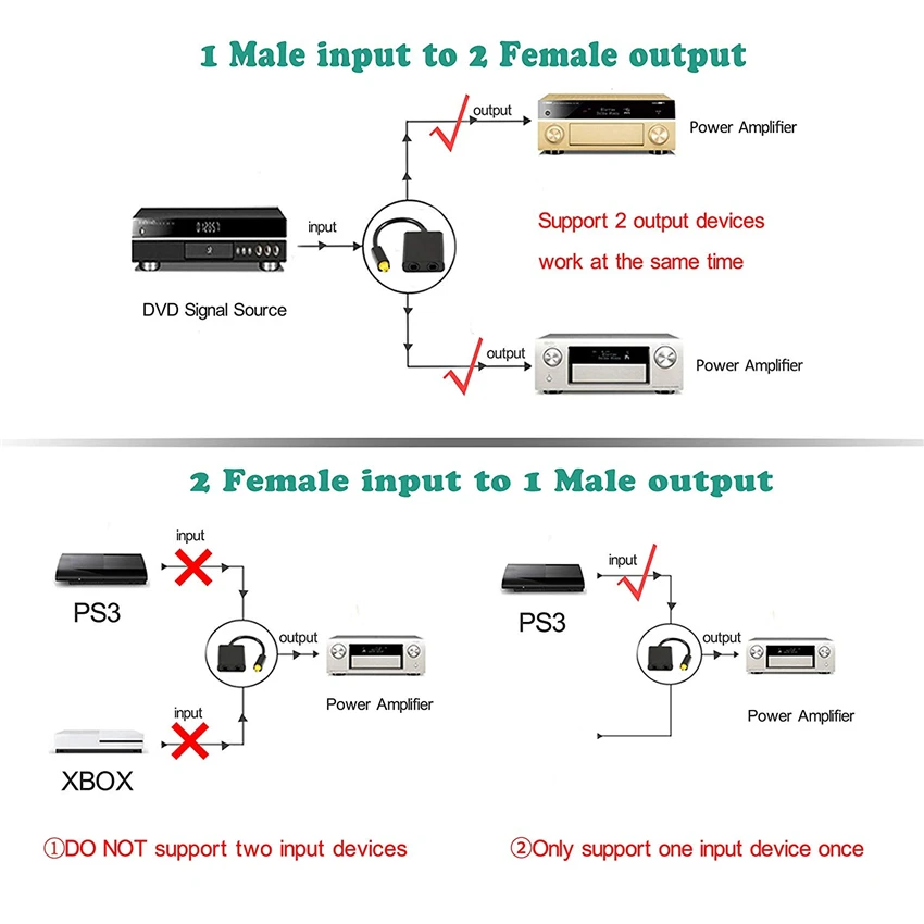 -Este divisor de audio óptico utiliza un núcleo de baja pérdida de 0,5mm, fibra sintética de Bajo jitter y conectores de metal pesado para amortiguar la vibración, brindándole la mejor experiencia auditiva.