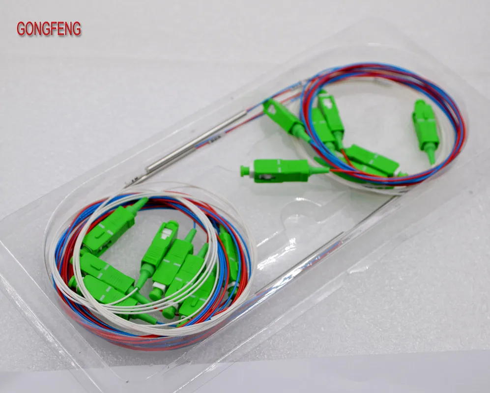 Comprar Divisor de fibra óptica SC/APC, Conector de paquete de tubo de acero Mini, relación espectro 10:90 ,50:50, oferta, 1:2, 10 Uds., nuevo, al por mayor