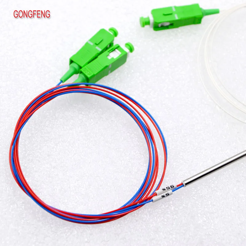 10 piezas nuevo caliente 1:2 cónico tipo SC/APC divisor de fibra óptica relación espectral 10:90 ,50:50 Mini conector de paquete de tubo de acero al por mayor