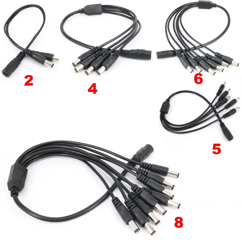 Comprar Divisor de fuente de alimentación de 12V CC, adaptador de conector de tiras LED CCTV de cámara macho, Cable de 2,1x5,5mm, 1 hembra a 2, 3, 4, 5, 6, 8