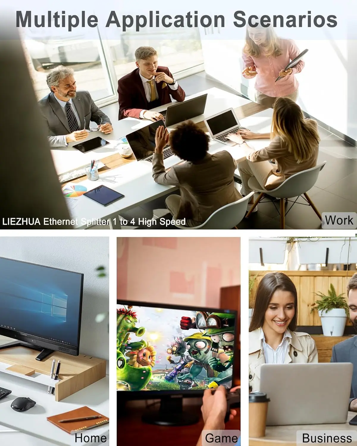 Divisor Ethernet: Admite que varias computadoras usen un cable Ethernet al mismo tiempo.Puede elegir diferentes estilos para la cantidad de dispositivos conectados.La velocidad de transmisión del dispositivo puede alcanzar los 1000 Mbps, lo que resuelve perfectamente los problemas de cableado de red insuficiente y transmisión de señal inestable.