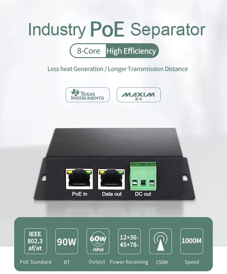 Comprar Divisor Gigabit de alta potencia, módulo de fuente de alimentación PoE aislado Industrial, 90W, 12V, voltaje de salida
