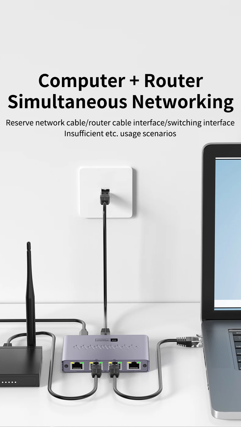 Compatible con todos los dispositivos RJ45, como enrutadores, módems, computadoras y cajas de TV.El diseño compacto y liviano lo hace ideal para uso en el hogar, la oficina o los viajes.