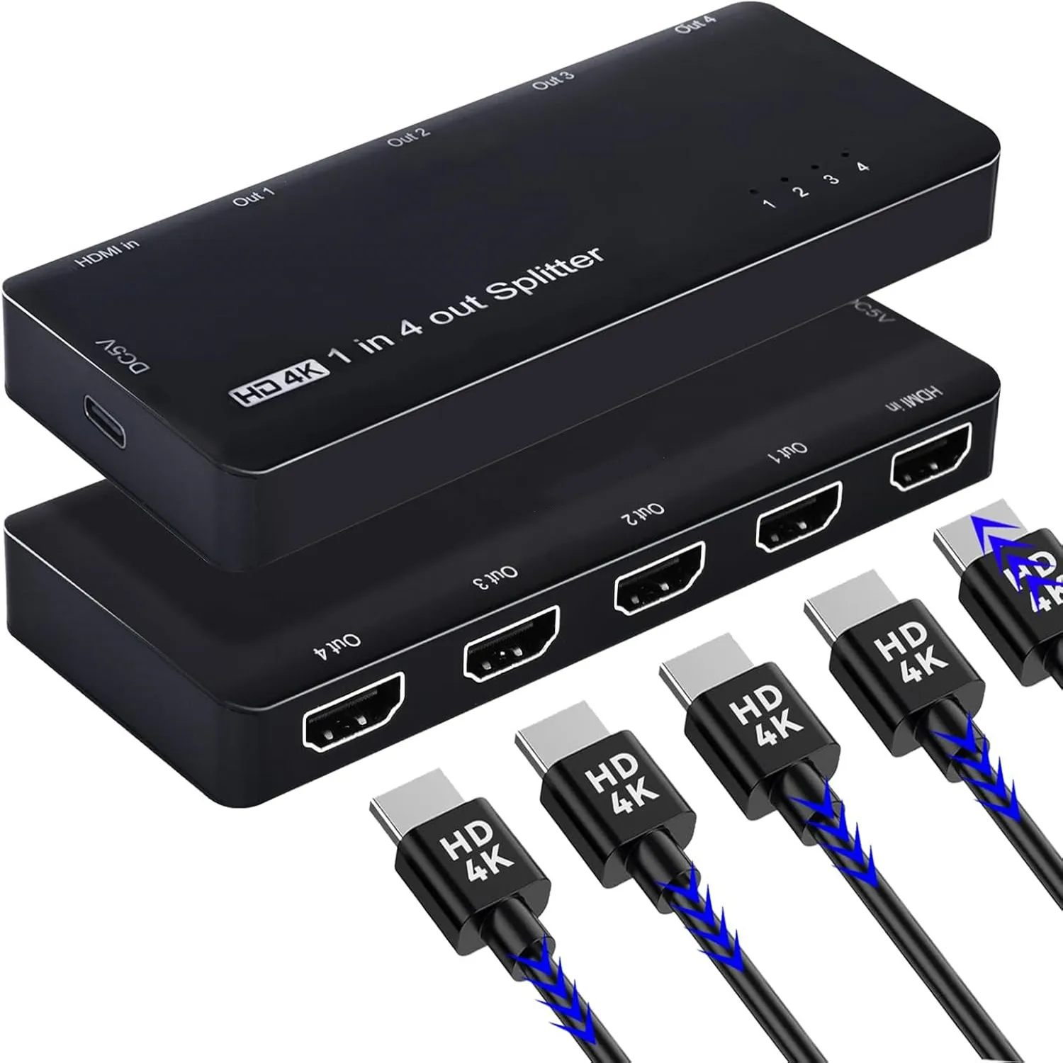 【EL PAQUETE INCLUYE】 1 * [Separador HDMI de 1 entrada y 4 salidas], 1 * [Cable de alimentación USB a USB C (adaptador de corriente USB no incluido, cable HDMI, que debe comprarse por separado)