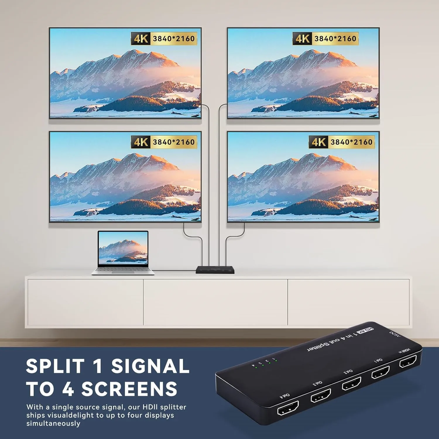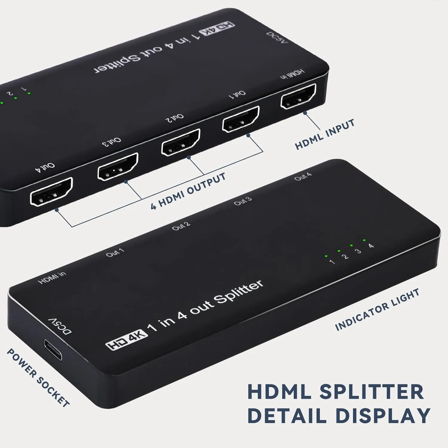 【Splitter HDMI con resolución HD】Este divisor HDMI es capaz de ofrecer un divisor HDMI de 1 entrada y 4 salidas con una distribución de vídeo 4K perfecta, perfecto para distribuir señales a múltiples televisores o monitores.Disfrute de la versatilidad de nuestro divisor HDMI de 4 puertos, ideal para configuraciones de cine en casa y oficina, y admite una resolución de hasta 4K a 60 Hz