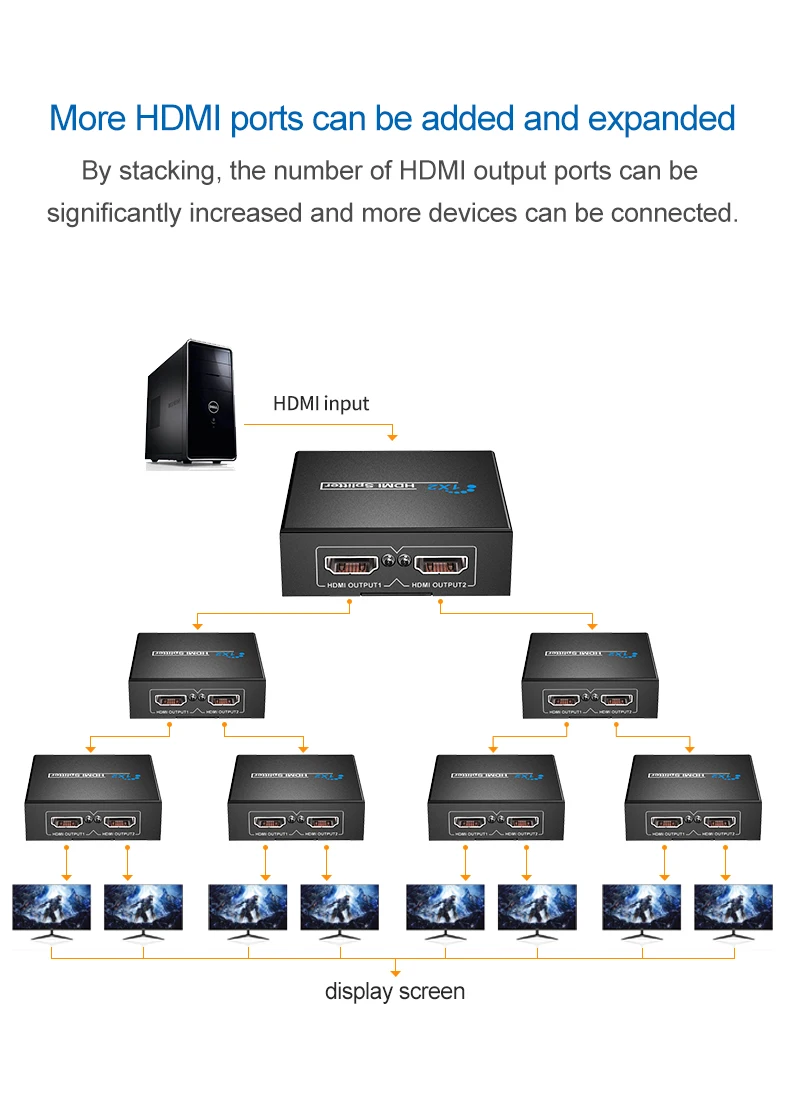 Comprar Divisor HDMI 1x2 Full HD 1080P, distribuidor de vídeo HDMI 1 en 2, amplificador duplicado de pantalla para PC, portátil a Monitor de proyector