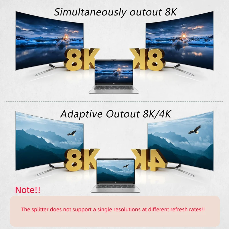 2) El artículo que aparece es un divisor HDMI y ambas salidas solo pueden mostrar las mismas.No puede funcionar como MST HUB.